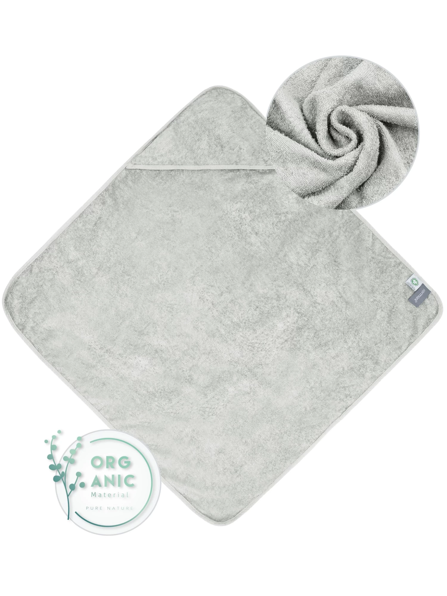 Das Baby Kapuzenhandtuch aus 100 % natürlicher und schadstoffreier Bio-Baumwolle sorgt dafür, dass die Kleinen trocken und warm bleiben.