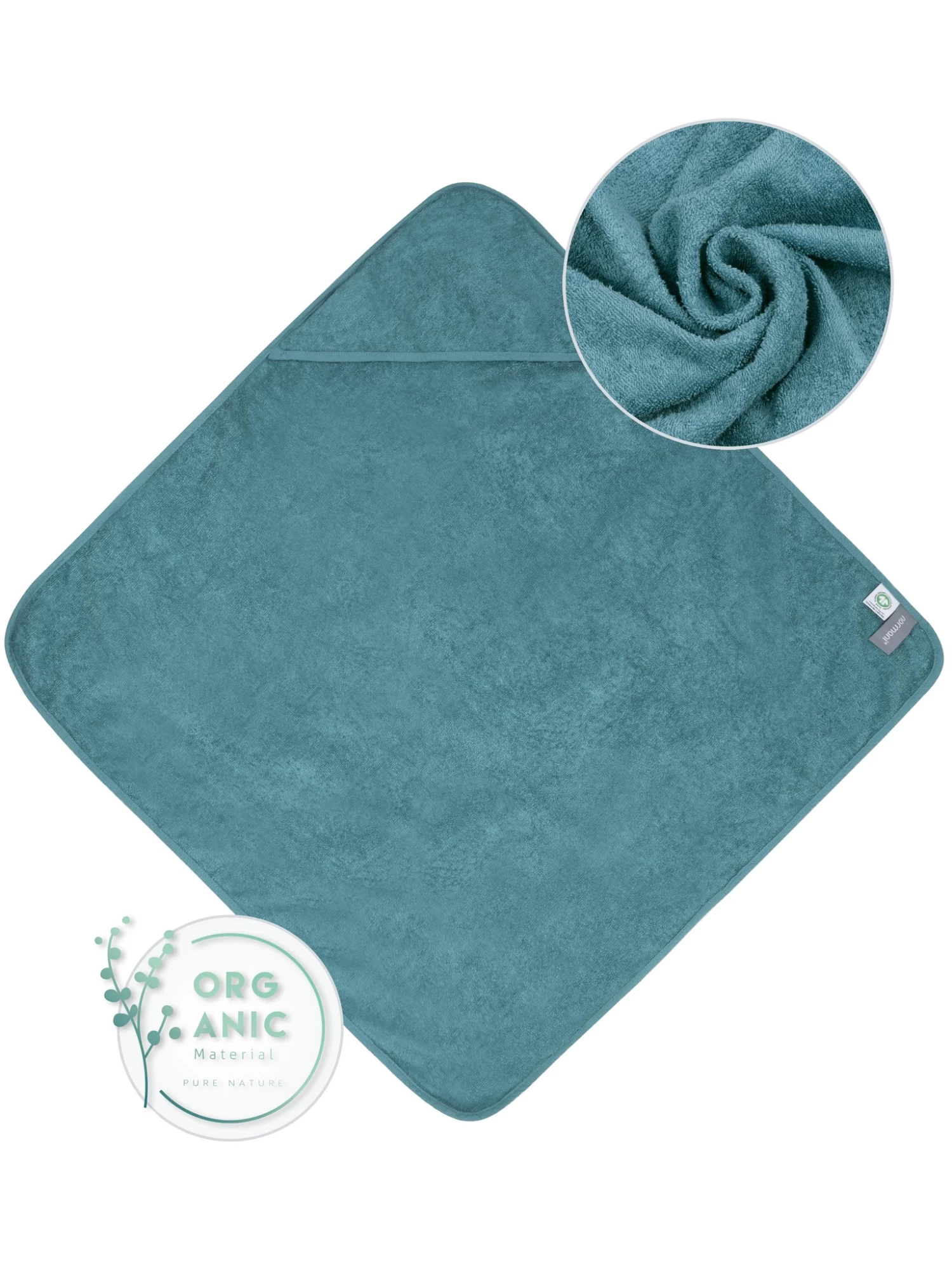 Das Baby Kapuzenhandtuch aus 100 % natürlicher und schadstoffreier Bio-Baumwolle sorgt dafür, dass die Kleinen trocken und warm bleiben.
