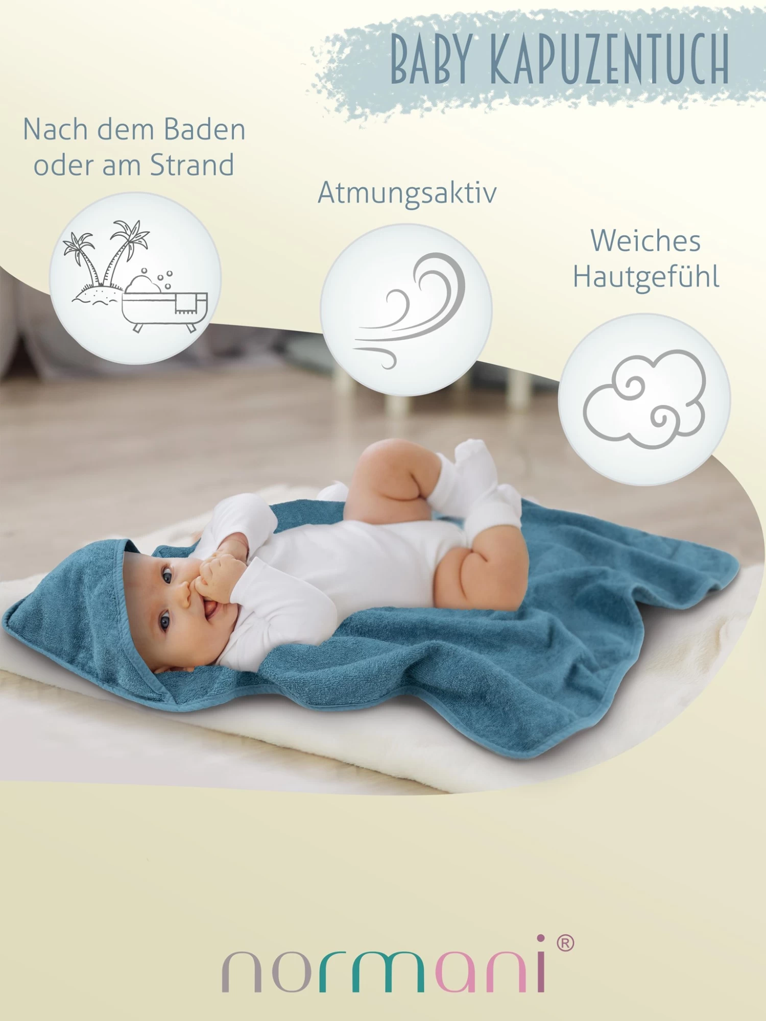 • Das Baybtuch mit Kapuze ist mit seiner Größe von 80 x 80 cm perfekt geeignet für Kindern von 0-2 Jahren