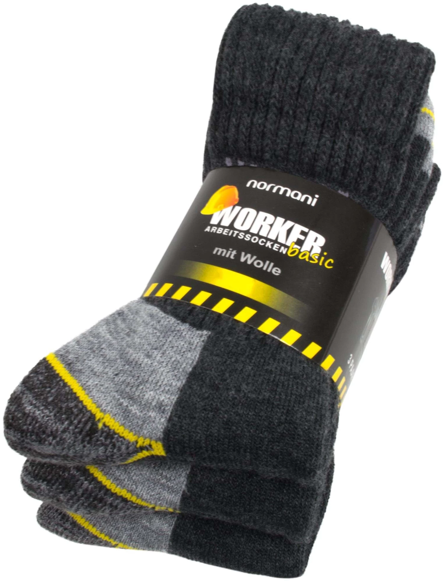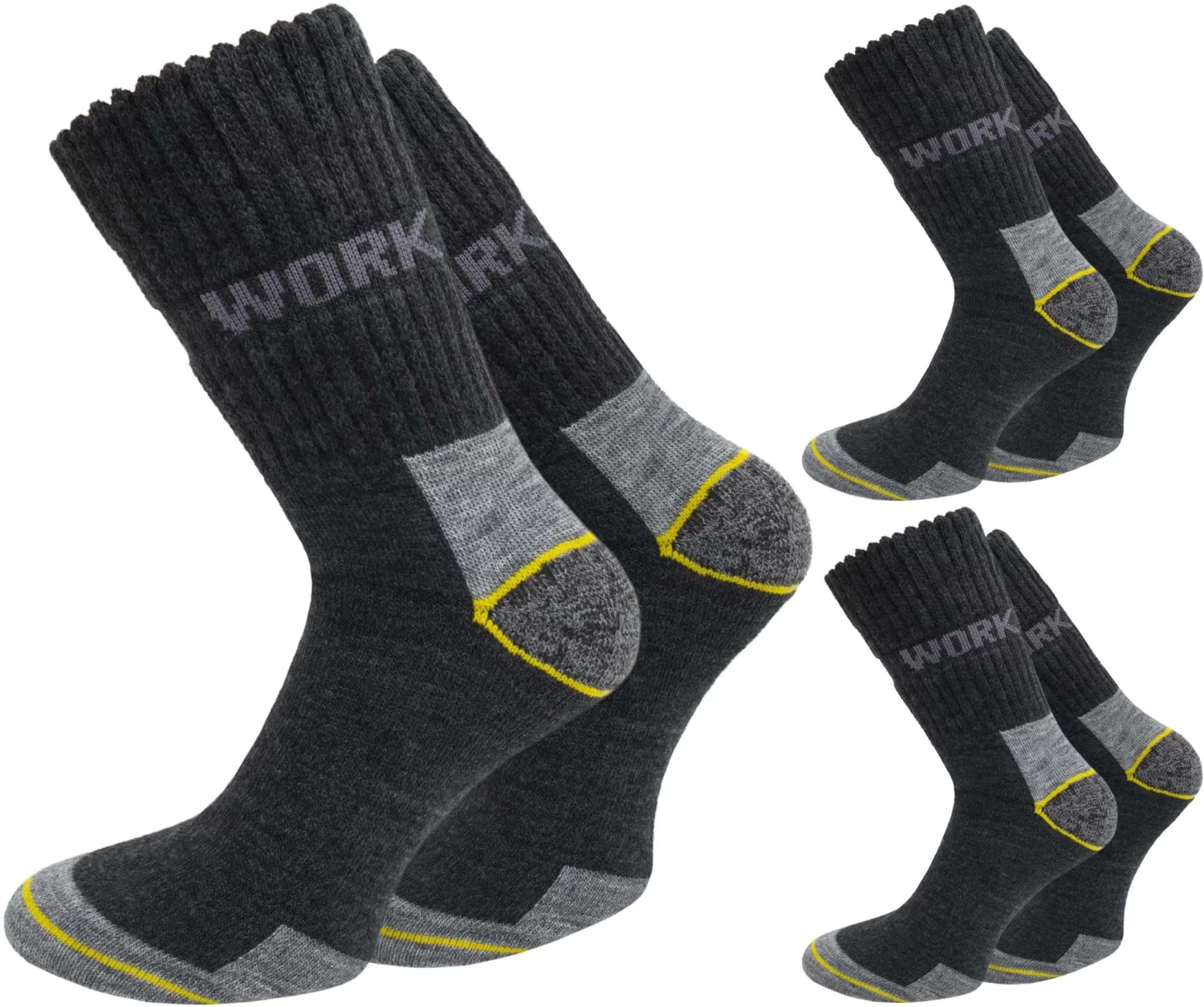 6 Paar Arbeitssocken „Work Wool“ Mit Wolle Schwarz/Grau/Gelb
