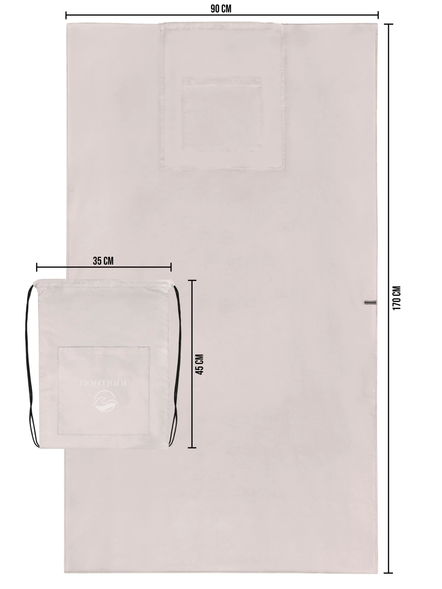 Angenehm weiches Badehandtuch aus 100 % Polyester – Saugfähiges und schnelltrocknendes Material welches Sie den ganzen Tag am Strand trocken hält. Das besondere bei diesem Handtuch ist die mit eingebaute Rucksackfunktion. Das Handtuch besitzt am Kopf eine große Tasche, in diese kann das Handtuch hineingestülpt werden, sodass nun dank der Tragegurte das Handtuch wie ein Rucksack getragen werden kann. Ist das Handtuch ausgebreitet auf dem Boden kann man Klamotten oder sonstiges in die große Tasche am Kopf packen, sodass man ein Kopfissen hat. Zusätzlich besitzt das Handtuch noch eine kleine Tasche mit Klettverschluss für Handy oder ähnliches. Gönnen sie sich einen wahren Alleskönner für ihren nächsten Strand- oder Schwimmbadbesuch.