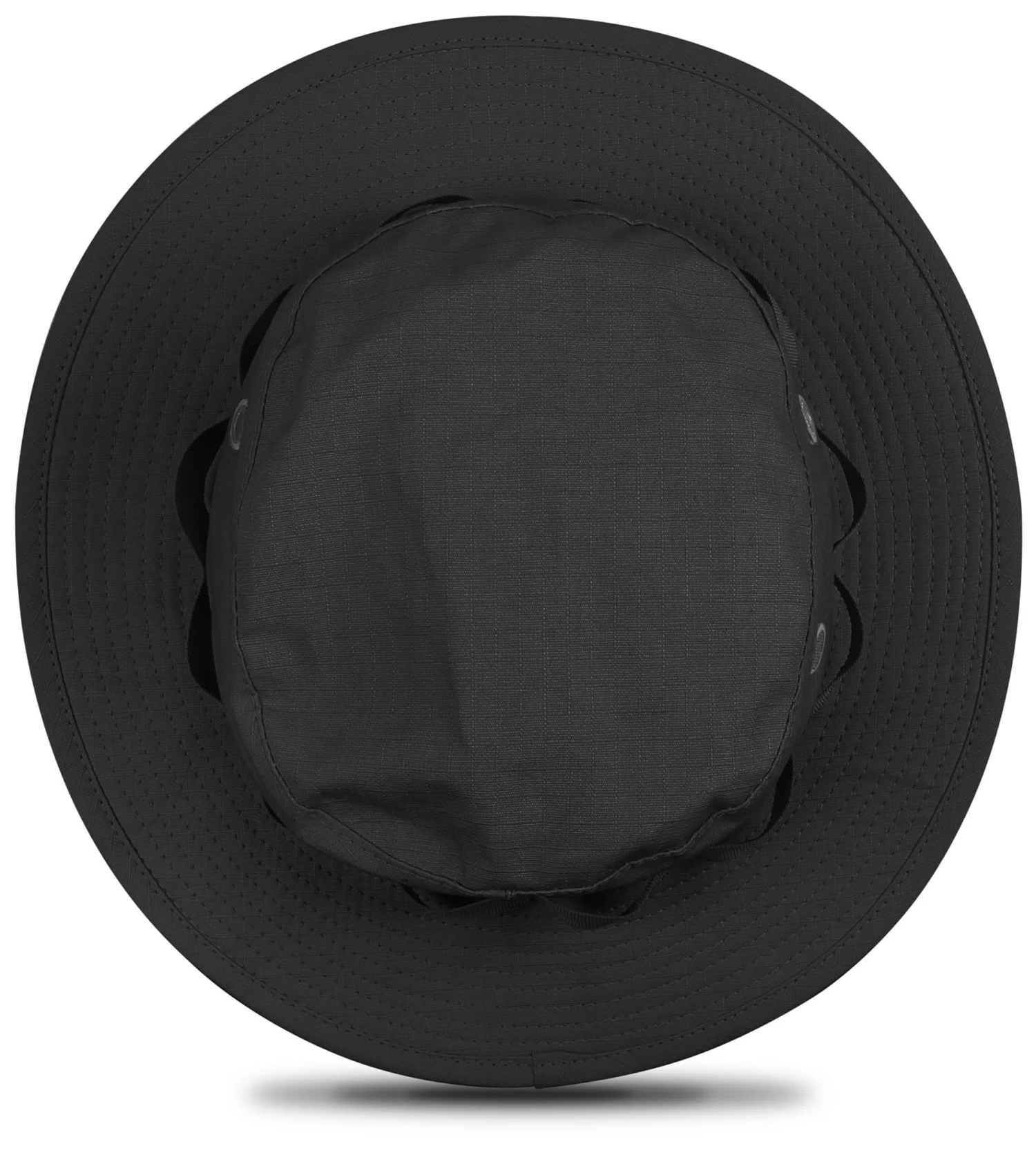 Der Boonie Hat erlangte ursprünglich als Tropenhut der US Army große Bekanntheit. Damals sowie heute wurde der tropische Krempenhut vor allem in wärmeren Regionen verwendet, zum Beispiel im Dschungel. Mit seiner breiten Krempe schützt er Kopf und Gesicht zuverlässig vor Sonnenstrahlen. In der hochwertigen Ripstop-Ausführung ist der Boonie Hat besonders reißfest, hautsympathisch und strapazierfähig. Durch eine 10-fach gesteppte Krempe wird deren Stabilität erhöht und sogar Regen wird bis zu einem gewissen Grad erfolgreich abgewiesen. Beim 2-in-1 Boonie Hat „Junglescout“ ist ein langer Nackenschutz eingezippt, der auch den Nacken erfolgreich vor einfallenden Sonnenstrahlen schützt. Dieser kann jederzeit abgenommen und separat in der Hosentasche verstaut werden. An beiden Seiten des Hutes befinden sich, horizontal angeordnet, je zwei eingefügte Fliegengitterösen zur wohltuenden Ventilation des Trägerhauptes und zur Abwehr von Insekten. Am Hut-Umbind sind 12 MOLLE-Schlaufen befestigt, die zunächst nur als Accessoire in Verwendung treten, aber durchaus auch als Befestigungsmöglichkeit für etwaiges Tarnmaterial oder andere leichte Gegenstände dienen können. Selbst der Fahrtwind im offenen Geländewagen vermag den Buschhut nicht vom Kopf zu wehen, sobald der Kordelstopper des Kinnbandes enger ans Kinn gezogen wurde. Wird der Hut nicht mehr gebraucht, ist es ein Leichtes ihn zusammengefaltet in der Tasche zu verstauen.