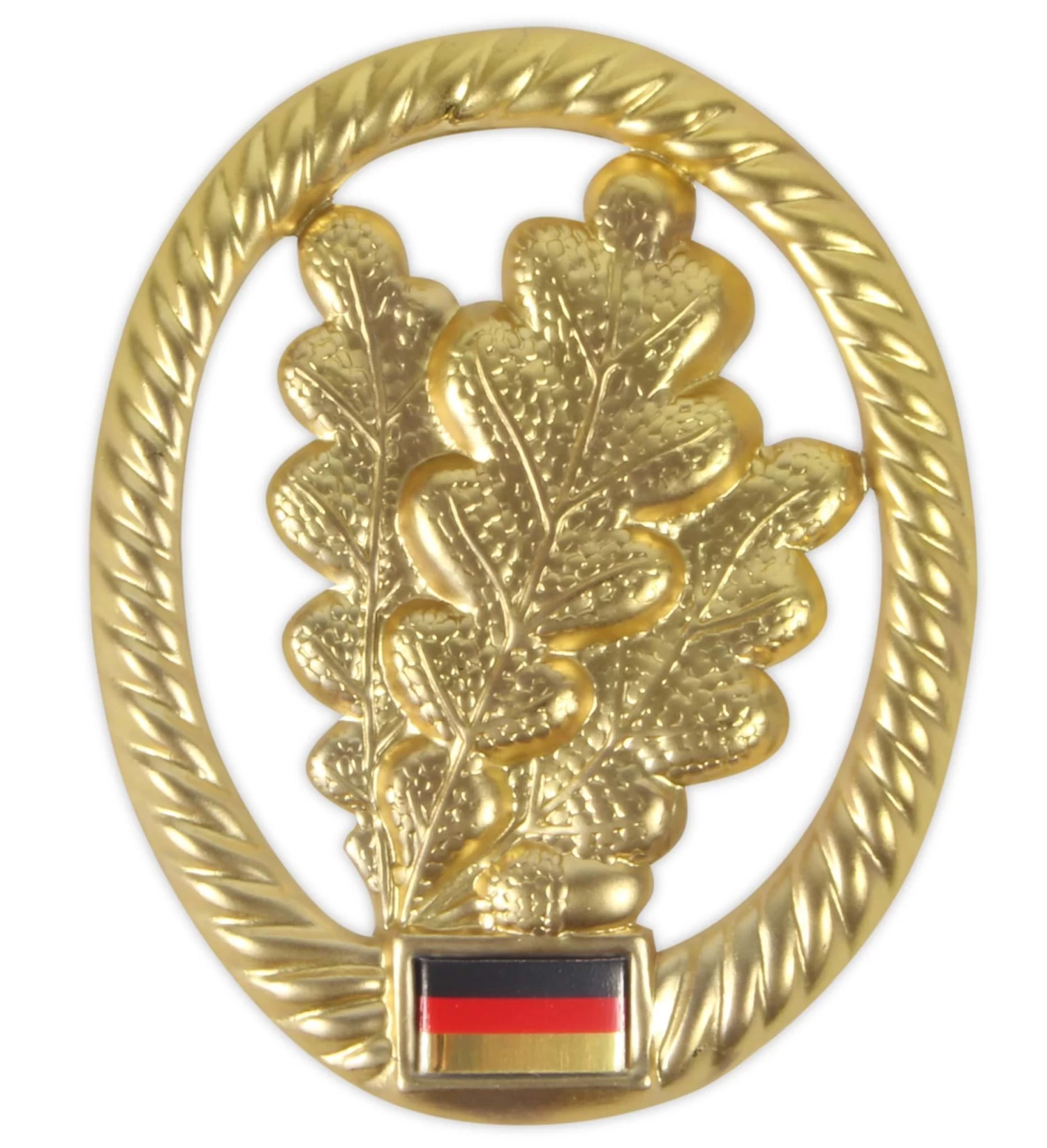 Das Bunderwehr Barettabzeichen mit deutschem Nationalabzeichen besteht aus stabilem Metall und lässt sich mit 4 biegbaren Ansteckdornen an Barett oder Uniform befestigen. Gerne wird das Emblem auch als ergänzendes Accessoire für eine Uniform an Karneval verwendet.