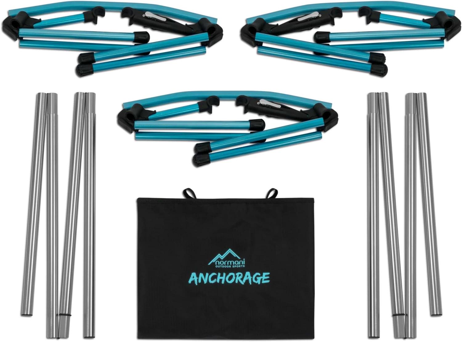 Um für unser Campingbett „Anchorage“ das minimale Packmaß zu erreichen muss vor dem Gebrauch die Liege in 3 Schritten montiert werden, welche Geübt innerhalb einer Minute vollzogen werden