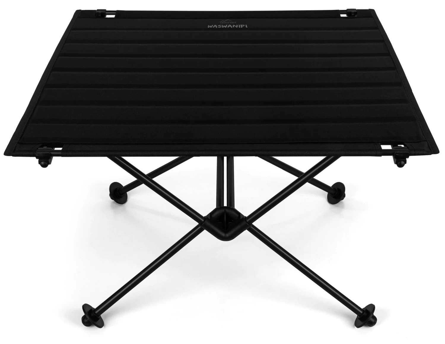 Das kleine Packmaß wird durch das faltbare Aluminiumgestell erreicht. Der im Rohr verarbeitete Gummizug funktioniert wie bei einem Outdoorzelt. Stellen Sie die Stangenkonstruktion in Stellung auf und der Gummizug erledigt mit dem reibungslosen Einrasten den Rest. Danach den Tischbezug ganz einfach aufstecken und fertig. Die Montagezeit beträgt weniger als 10 Sekunden. Die robuste Aluminiumkonstruktion trägt eine maximale Belastung von 60 kg (132 lbs). Für eine optimale Lastenverteilung sorgt die Kreuzung der einzelnen Aluminiumrohre. Ein stabiles, belastbares und haltbares Gestänge. Die Tischoberfläche ist reißfest und feuchtigkeitsunempfindlich. Gummierte Füße verhindern, dass der Falttisch in weiche Böden einsinkt oder auf glatten Böden verrutscht. Mit ansprechendem Farbkontrast und gefärbtem Aluminiumgestell ist der Campingtisch echtes Lifestyle-Produkt. Eine praktische Ergänzung zu unserem Moak oder Peawanuck Campingstuhl..