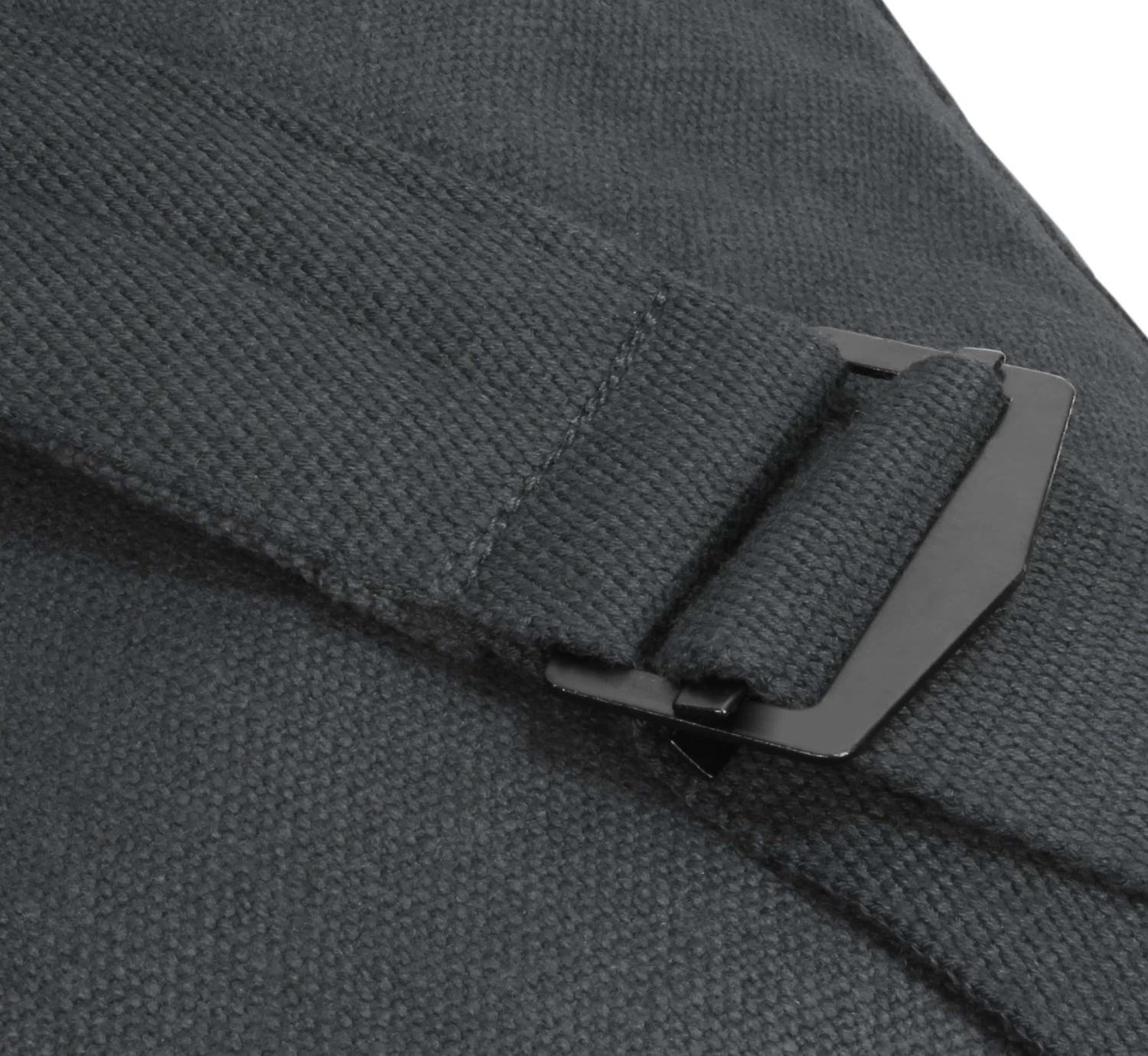 Das enorm strapazierfähige Canvas-Material besteht aus reiner Baumwolle. Der Schussfaden wird jeweils im Wechsel vor und hinter einem Kettfaden gewebt, dadurch ist Canvas ein festes und sehr belastbares Gewebe. Der Seesack hält ein großes Zuladungsgewicht aus.