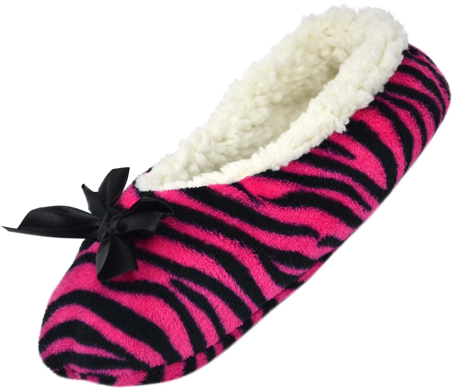 Damen-Slipper Hausschuhe Mit Schleife Zebra/Pink