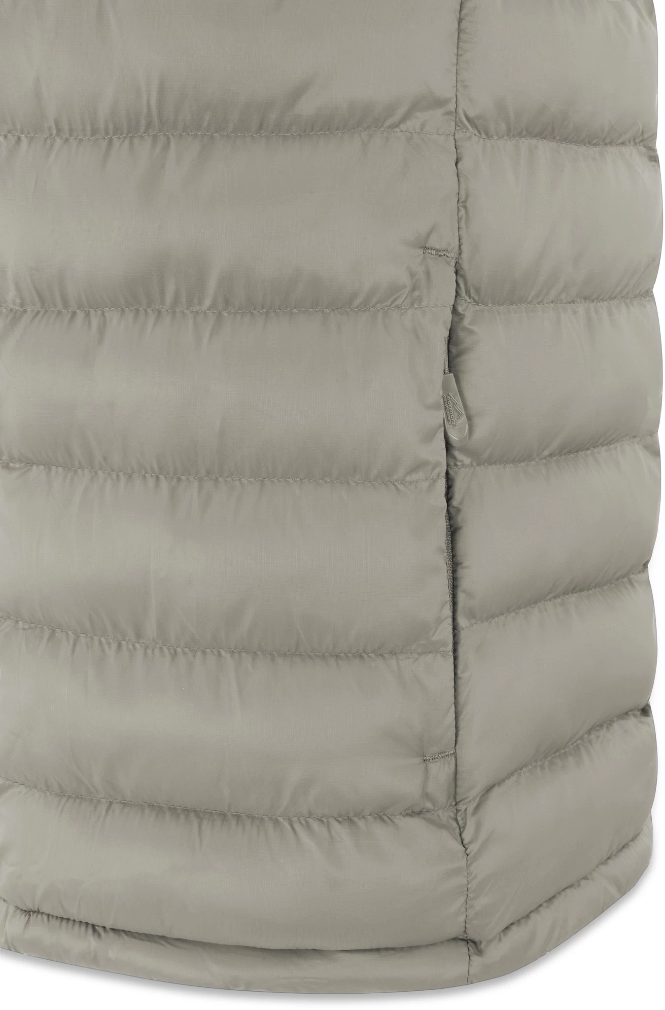 Modernes, schlichtes Design vereint mit hohem Komfort und Funktionalität für jegliche Outdoor Aktivität. Unsere „Turku“ Steppweste ist ein perfekter Midlayer für den Wanderurlaub mit Zwischenstopp in einer Großstadt. Sie lässt sich einfach über einen dicken Pullover oder auch eine Fleecejacke überziehen und vollendet somit den Zwiebellook der sich bestens für Outdoortouren eignet. Andererseits kann sie auch elegant mit einem Hemd und Jeans kombiniert werden für ein legeres Outfit in der Stadt. Mit diesem Kleidungsstück sind sie auf beinahe jeden Anlass und wechselhaftes Wetter vorbereitet. Dank 2 Seitentaschen haben die Hände an empfindlich kalten Tagen ausreichend Platz. In der Innentasche mit Reißverschluss sind Utensilien schnell griffbereit. Eine der Einschubtaschen stellt außerdem eine Packtasche für die Weste dar, die so schnell und platzsparend in Ihrem Rucksack verschwindet. Elastische, eingefasste Armöffnungen, Reißverschluss mit Kinnschutz und der angenehme Schnitt bieten höchsten Komfort. Zusätzlich lässt der Schnürzug im Saum die Weste für einen passgenauen Sitz eng an den Rumpf ziehen, um auf dem Fahrrad auf windigen Tagestouren keine Wärme zu verlieren. Die wärmende, unempfindliche Kunstfaserfüllung dient als ideale wärmende Zwischenschicht für mollig warme Verhältnisse zu Ihrer Funktionsbekleidung. Das 20 Denier Rip-Stop Polyamid Obermaterial ist winddicht, stark wasserabweisend und besitzt eine weiche, angenehme Haptik.
