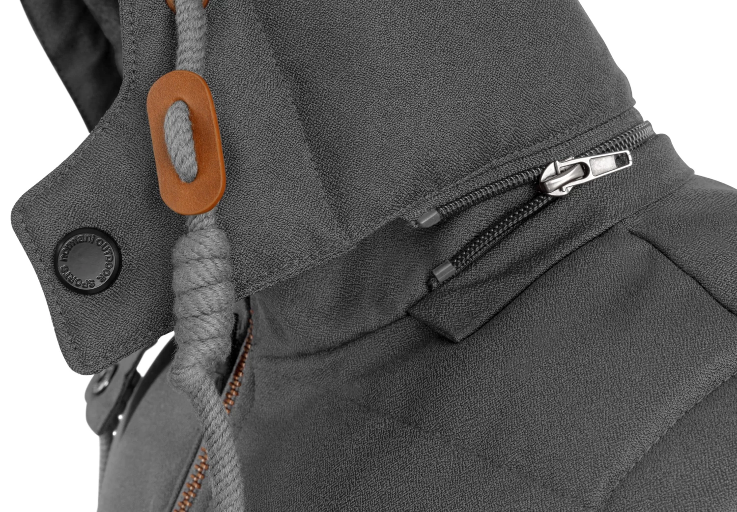 • Per Druckknopf + Reißverschluss abnehmbare Kapuze
