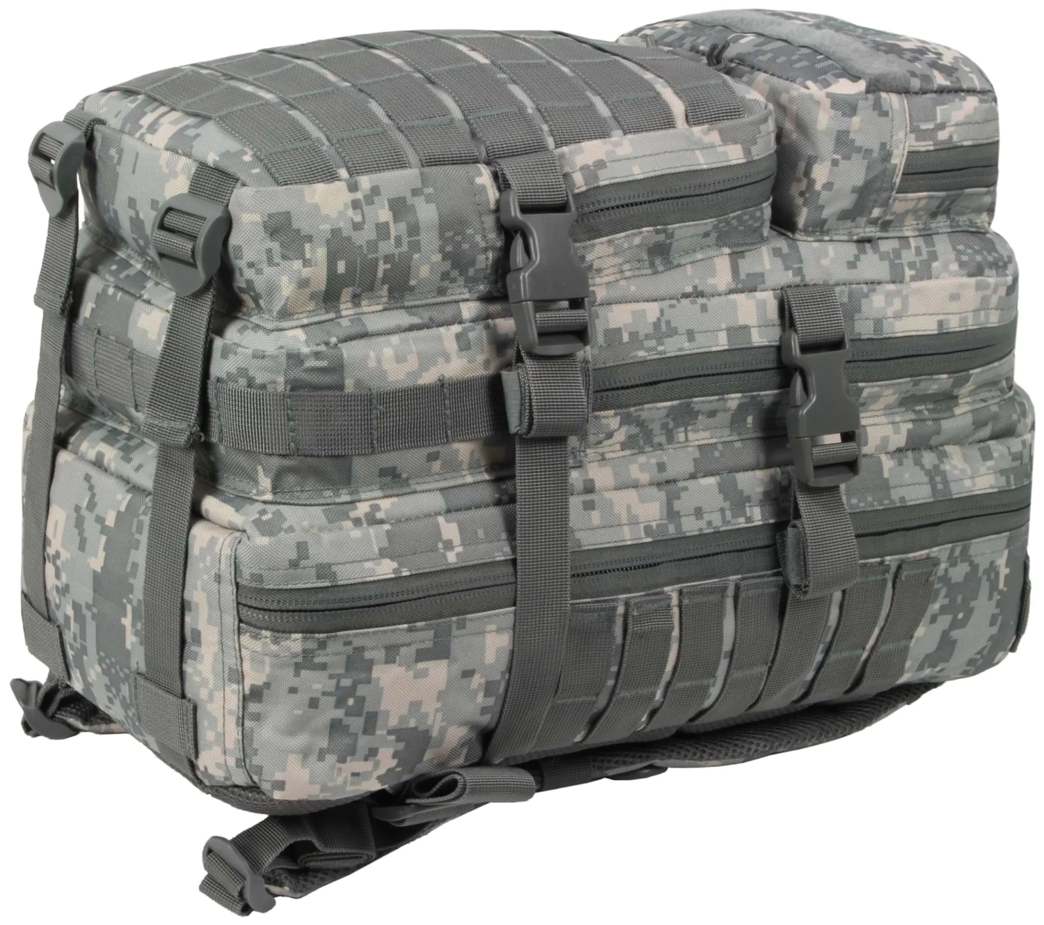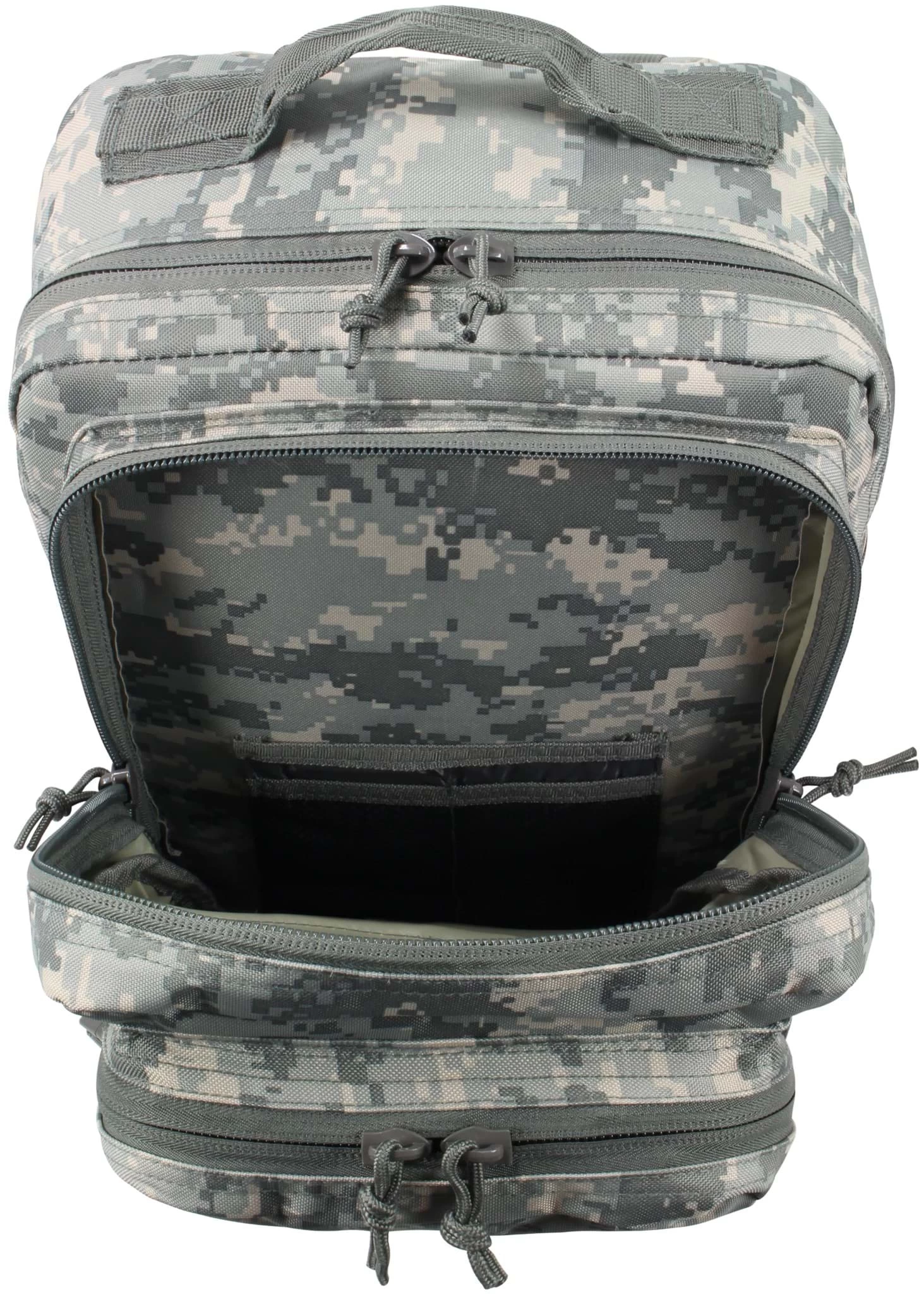 Der normani OUTDOOR SPORTS® Assault Pack Rucksack verfügt über 2 große Hauptfächer. Das größere mit Netzfach und Reißverschluss-Innentasche für wichtige Utensilien wie Portmonnaie oder Autoschlüssel, das kleinere mit Steckfächern. Speziell für den ambitionierten Outdoor-Sportler wurde ein Fach am Rücken für die Aufnahme eines Hydropacks integriert. In den 2 Fronttaschen, die untere mit Organizer-Steckfächern, auch für Stifte, versehen, können weitere Gegenstände untergebracht werden und sind damit schnell erreichbar.