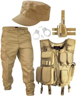 DESERT Kostüm Bestehend Aus Weste, Hose, Holster, BDU Cap Und Handschellen Coyote