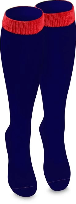 1 Paar Kniestrümpfe „Bi-Color“ Mit Farbig Abgesetztem Bund Marine/Rot