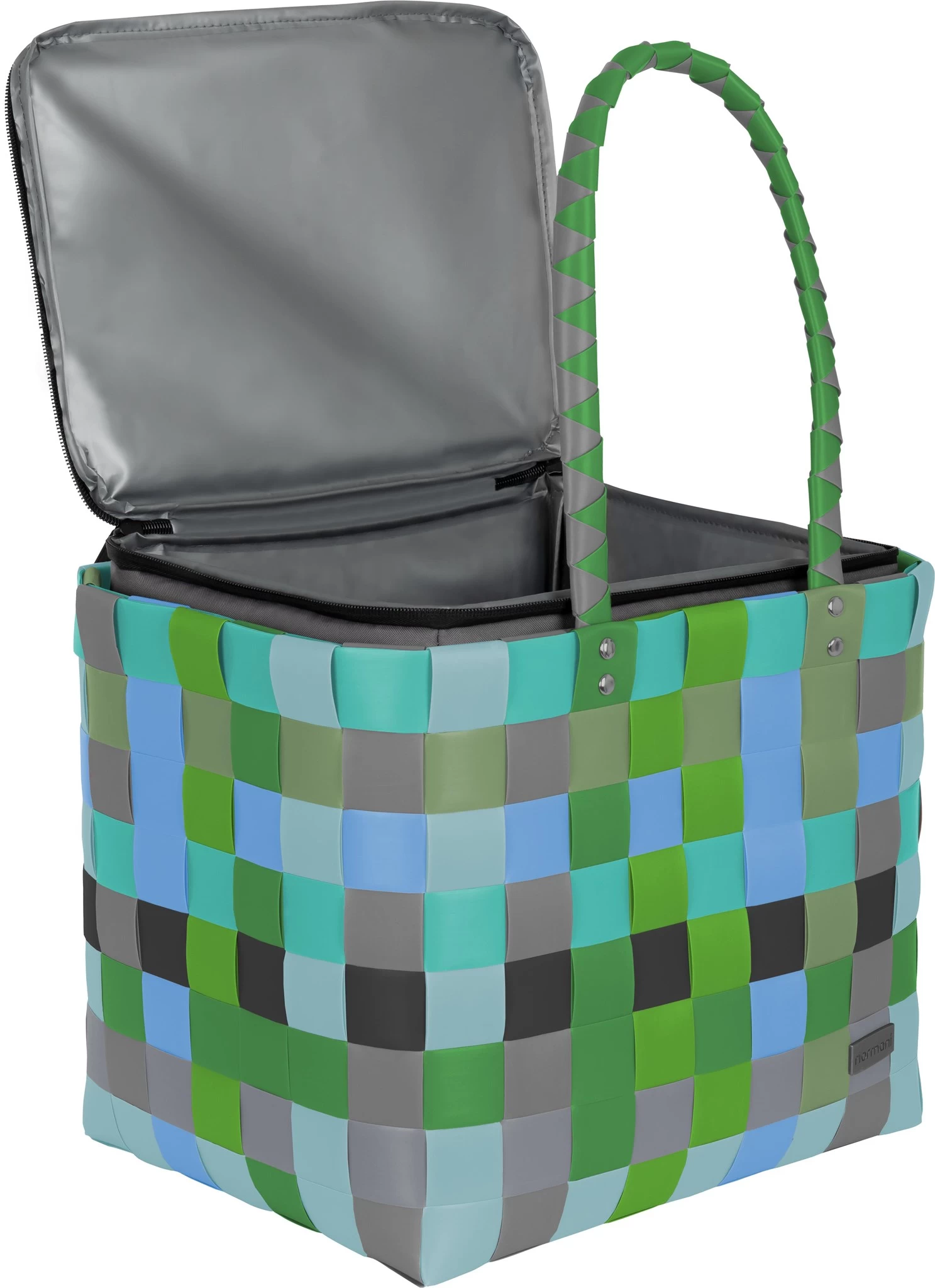 Die Kühltasche besteht aus leichtem und stark isolierenden Material bietet die perfekte Voraussetzung für gut gekühlte Snacks und Getränke. In Kombinaiton aus Kühltasche und Flechtkorb kann diese auch mit schweren Flaschen oder ähnliches befüllt werden und gleichzeitig ausreichend Stabilität bieten.