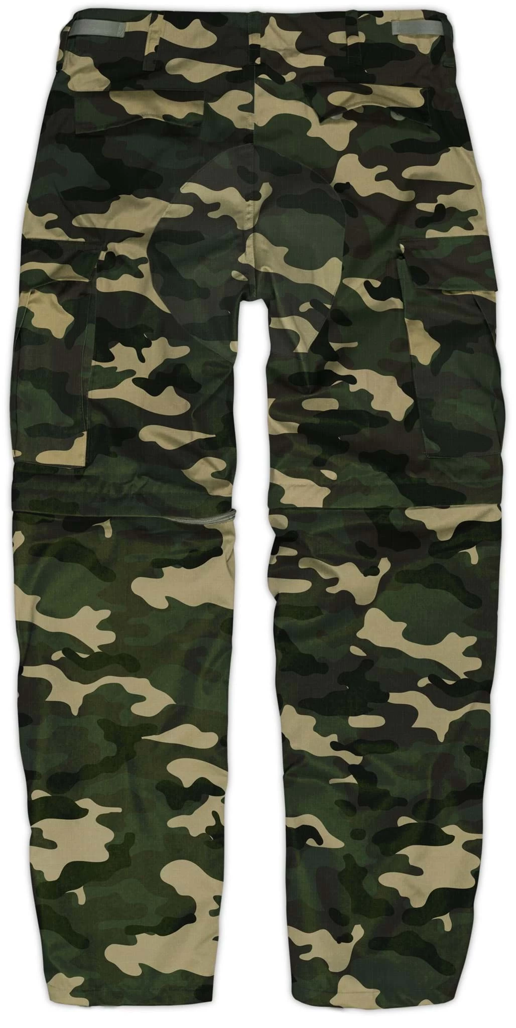Die BDU Feldhose „Landscape“ mit „2-in-1 Tec Zip System“ Funktion, besteht aus einem robusten Materialmix aus Baumwolle und Polyester. Die Baumwolle sorgt für die natürliche Haptik, während das Kunstfasermaterial entstehende Feuchtigkeit konsequent nach außen ableitet. Das in das Obermaterial eingelassene Rip-Stop-Gewebe ist ein sehr feines und an der speziellen Rechenkästchenstruktur zu erkennen. Alle paar Millimeter zieht sich ein kräftigerer Kett- bzw. Schussfaden durch das Gewebe. Sollte das Material reißen, läuft der Riss nicht ungebremst durch die gesamte Fläche, sondern stoppt am stärkeren Ripstop-Faden. Das Material regeneriert dadurch seine enorme Reißfestigkeit und Robustheit. Das Material ist zudem wind- und wasserabweisend und nach dem Kontakt mit Wasser schnelltrocknend, sowie knitterarm. Es hält mehr als einen kurzen Sommerregen aus. Durch die Reißverschlüsse im Kniebereich können die unteren Hosenbeine abgetrennt werden. Die Hosenbeine können anschließend in den geräumigen Cargotaschen verstaut werden. Die Beintaschen sowie die Gesäßtaschen sind mit Knöpfen verschließbar und durch eine Patte abgedeckt. Die Bundweite ist seitlich regulierbar, der Eingriff verfügt über eine verdeckte Knopfleiste. An den Beinenden befinden sich Zugbänder, mit denen die Hose am Knöchel enger gestellt werden kann. Das Material besitzt einen Sonnenschtzfaktor von 30+. Somit lässt sich die Hose auch in wärmeren, sonnenintensiven Regionen tragen. Bei abendlicher Dämmerung werden die Hosenbeine dank dem praktischen „2-in-1 Tec Zip System“ wieder eingezippt und schützen vor Insektenstichen. Durch diese flexible Handhabung, erspart man sich das Mitführen einer weiteren Hose und ist trotzdem jederzeit angemessen gekleidet.