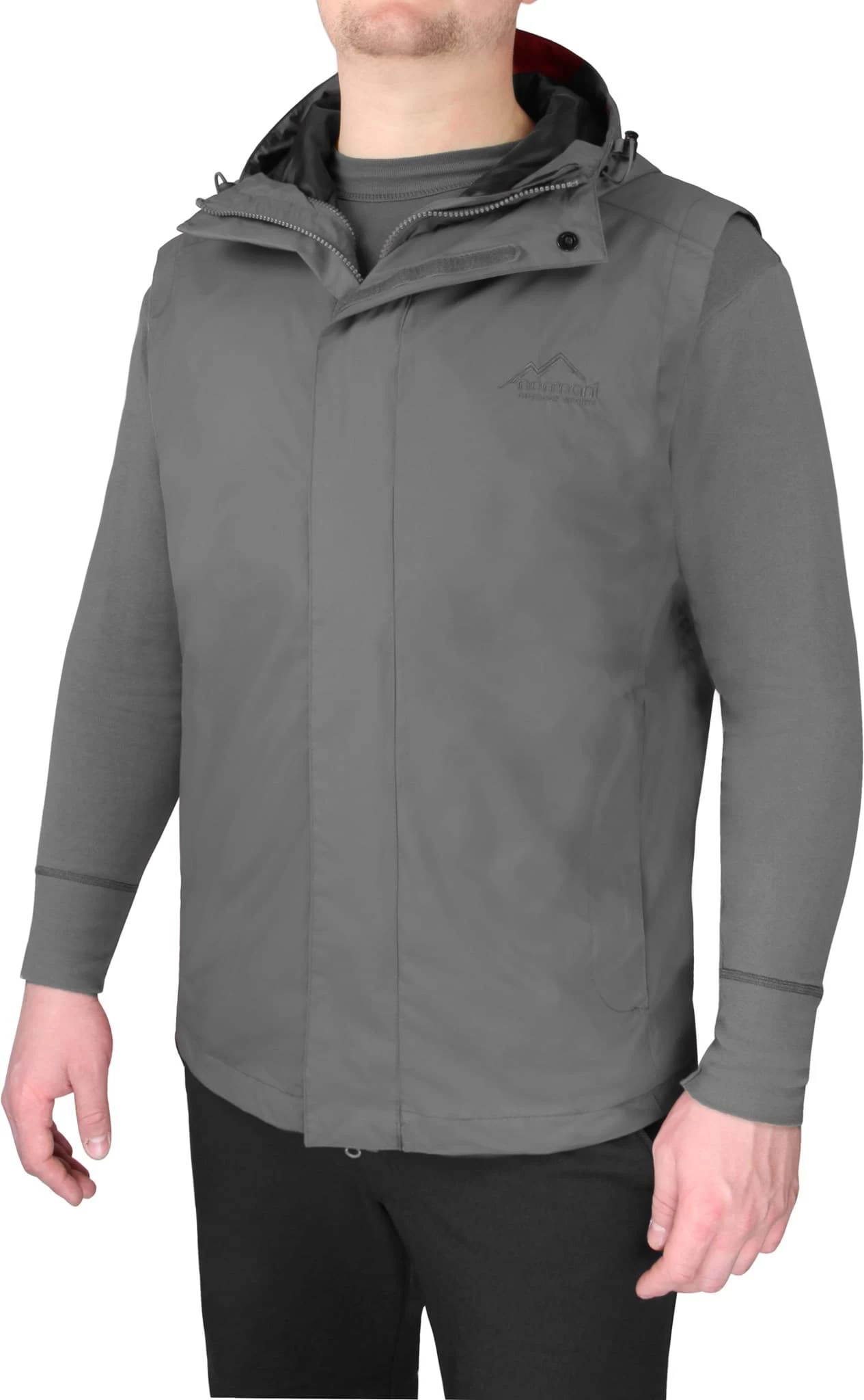 Maximale Bewegungsfreiheit gepaart mit wasser- und winddichten Materialien. Die Hardshellweste bietet zahlreiche Funktionen, um in diversen Einsatzbereichen, wie beim Joggen, Reiten, Wandern, Walking, Angeln oder im Alltag zu bestehen. Das ZIP-T3K System ermöglicht unterwegs die Wärmezufuhr individuell zu erhöhen, indem einfach und flexibel eine weitere Weste oder Jacke, aus wärmendem Fleece eingezippt werden kann. Schnürzug im Saum, zum Schutz der Nieren vor eindringender kalter Luft, Ärmelbündchen mit Klettverschluss und einer Kapuze mit Volumenregulierung hinten und vorne. Das Netzfutter innen, wirkt wärmeregulierend und sorgt, wenn die Jacke geschlossen ist, für eine ausreichende, angenehme Luftzirkulation. Unter der Patte auf Brusthöhe, befindet sich eine Reißverschlusstasche. Diese eignet sich sehr gut für ein sicheres Aufbewahren von Portemonnaie, Telefon oder Autoschlüssel. Die wetterfeste Outdoorweste wird mit einem Reißverschluss, mehreren Klettstreifen und 2 zusätzlichen Druckknöpfen geschlossen. Somit ist auch bei stärkerem Wind der Oberkörper gut geschützt. Der rundum hochstehende Kragen, und die verstellbare Kapuze, schützen zusätzlich Hals und Kopf.
