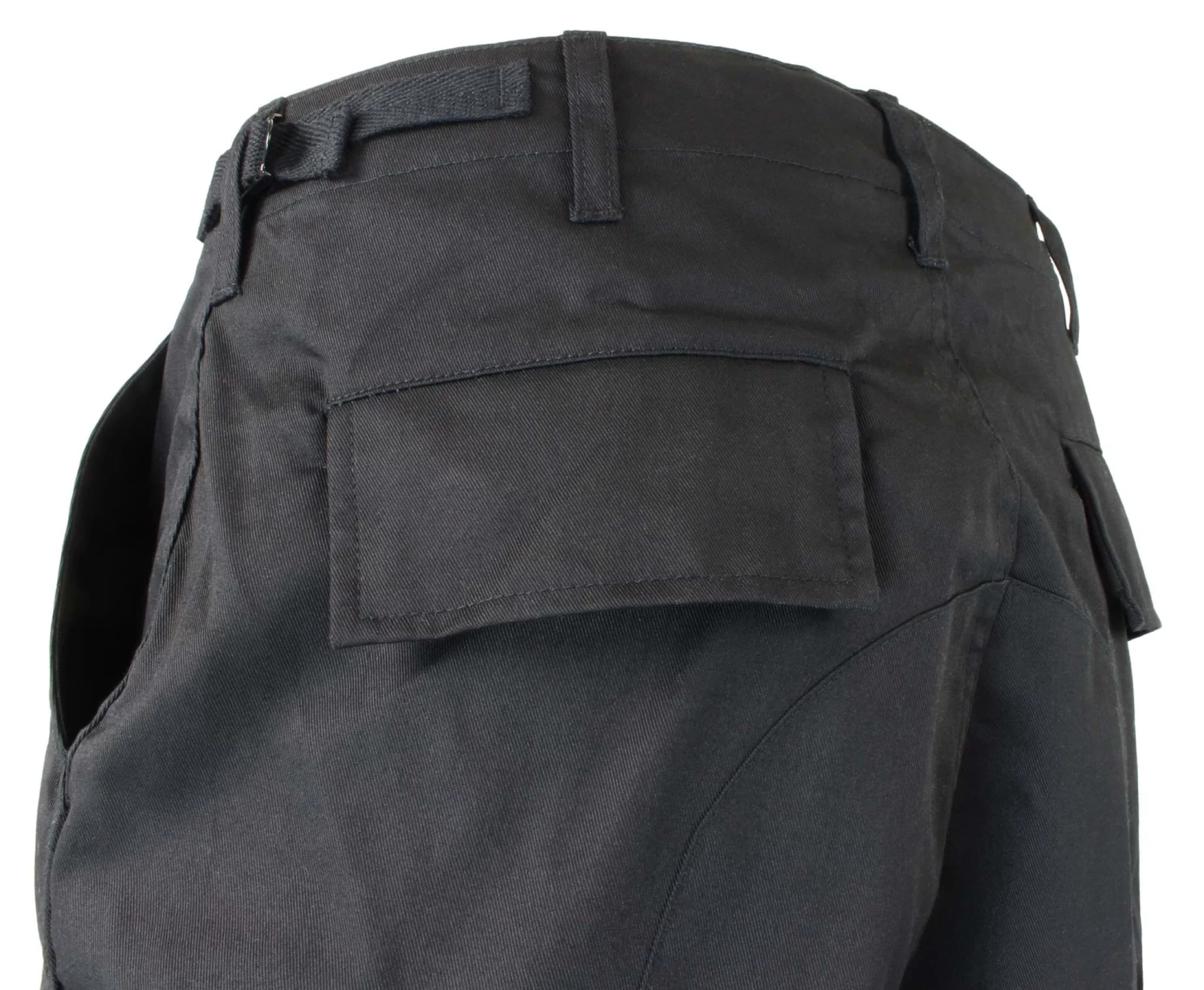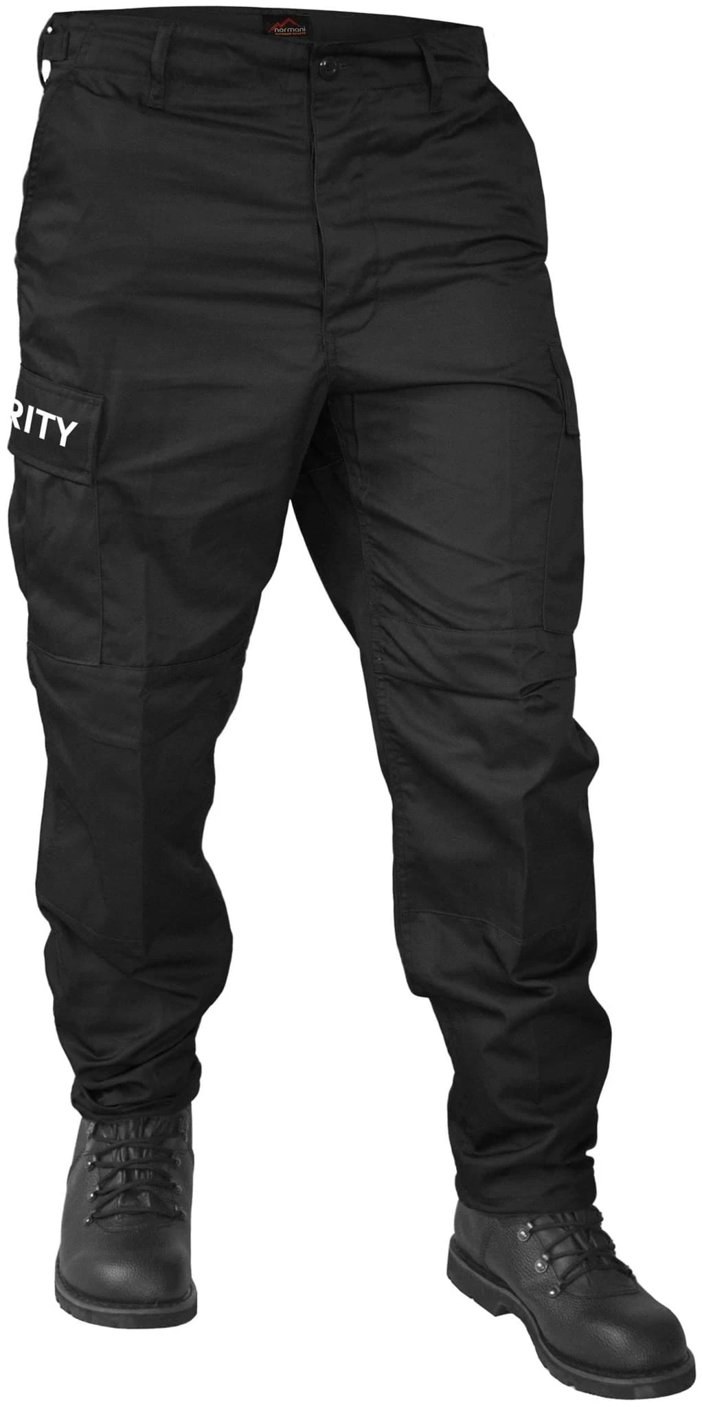 Die beliebte BDU-Rangerhose ist jetzt auch in der SECURITY Ausführung erhältlich. An den beiden Patten der geräumigen Cargo Taschen, befindet sich der SECURITY Schriftzug. Die Security Rangerhose ist äußerst strapazierfähig, wasserabweisend, trocknet schnell und verfügt über insgesamt 6 Taschen. Gerade in den großen Beintaschen an den Seiten können Sie dank der integrierten Dehnfalten viele Kleinigkeiten unterbringen. Einmal zugeknöpft fällt aus diesen Taschen nichts heraus, auch nicht bei schnellen Sprints im Gelände. Taillenweite und Beinabschluss sind individuell verstellbar, sodass Ihre Rangerhose perfekt sitzt. Für Outdoor-Aktivitäten im Gelände wurde der reißfeste Stoff der Battle Dress Uniform an Sitzfläche und Knien extra verstärkt. Die lange US Army Hose ist solide vernäht und gehört für Outdoor-Begeisterte, Forstarbeiter oder Softair-Teams zum Outfit. Der robuste Materialmix mit atmungsaktiver Baumwolle und stabilem Polyester ist strapazierfähig und kann bei 30 °C gewaschen werden.
