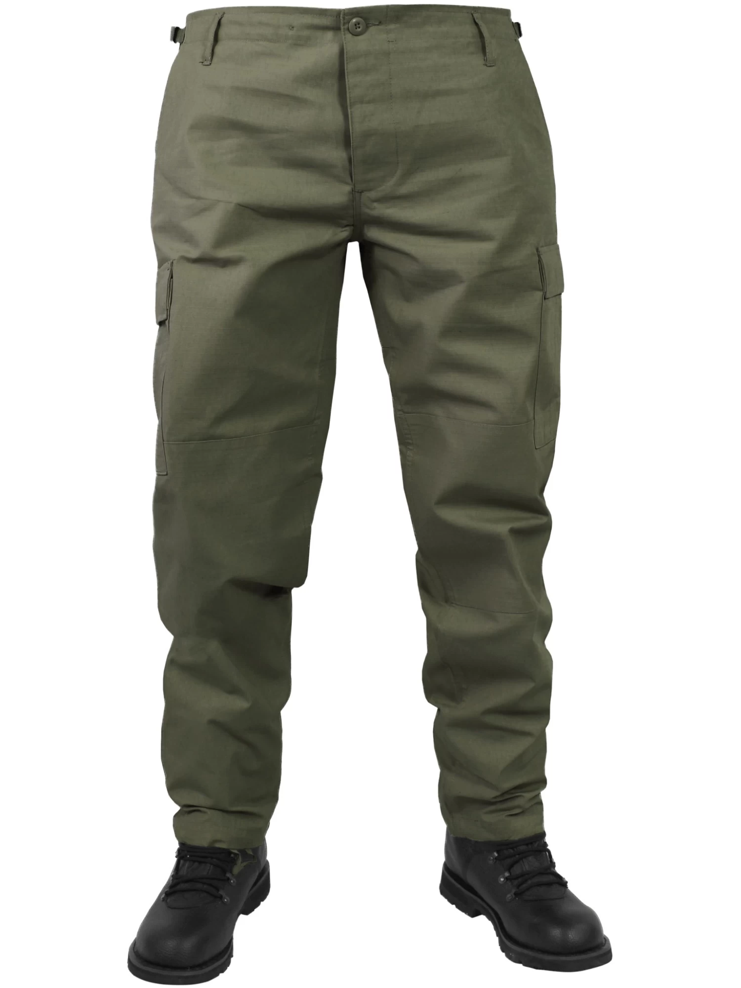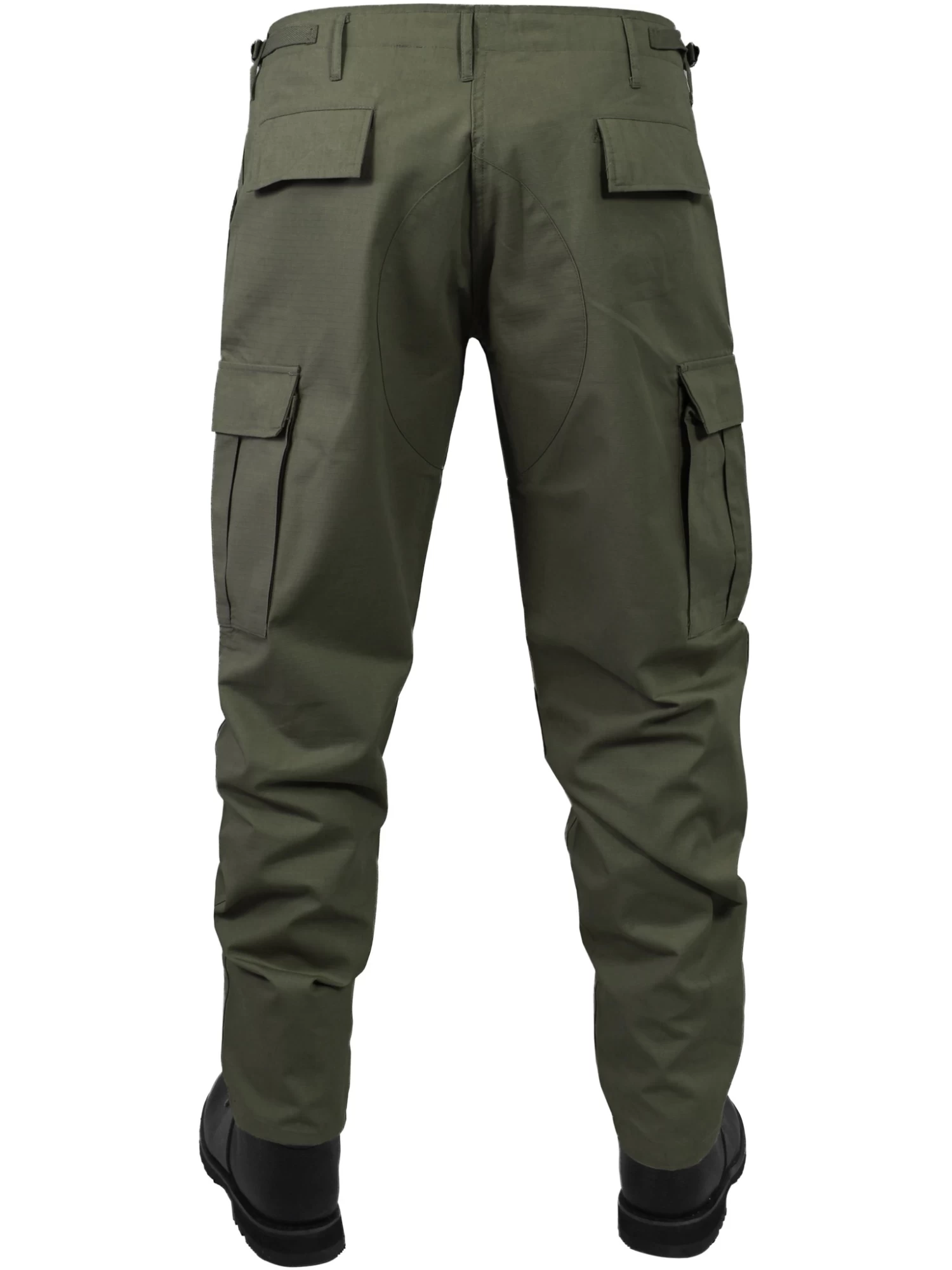 Die klassische Rangerhose in neu aufgelegter Ripstop-Ausführung. Ripstop-Gewebe ist ein feines Gewebe und an der speziellen Rechenkästchenstruktur zu erkennen. Alle paar Millimeter zieht sich ein kräftigerer Kett- bzw. Schussfaden durch das Gewebe. Sollte das Material reißen, läuft der Riss nicht ungebremst durch die gesamte Fläche, sondern stoppt am stärkeren Ripstop-Faden.