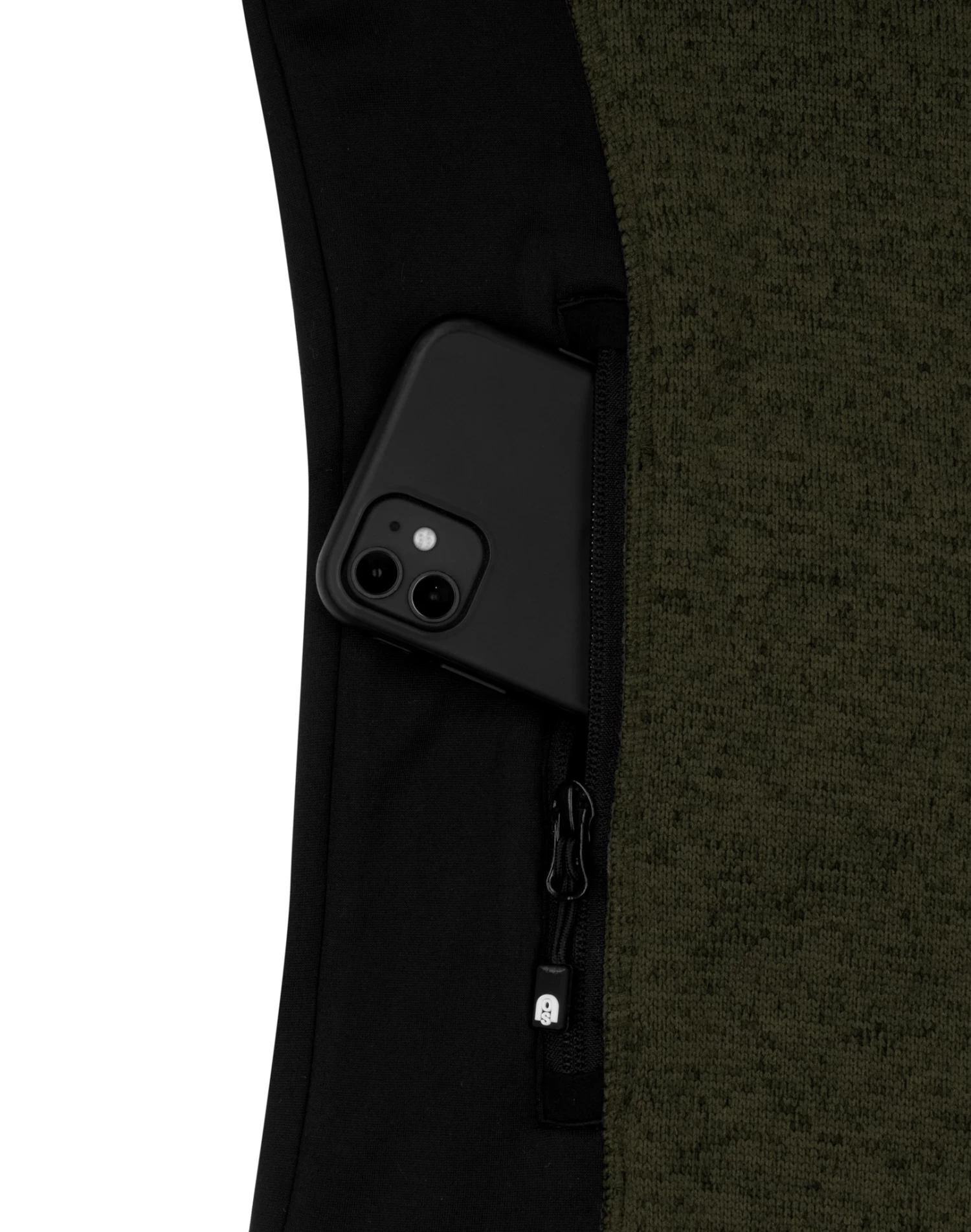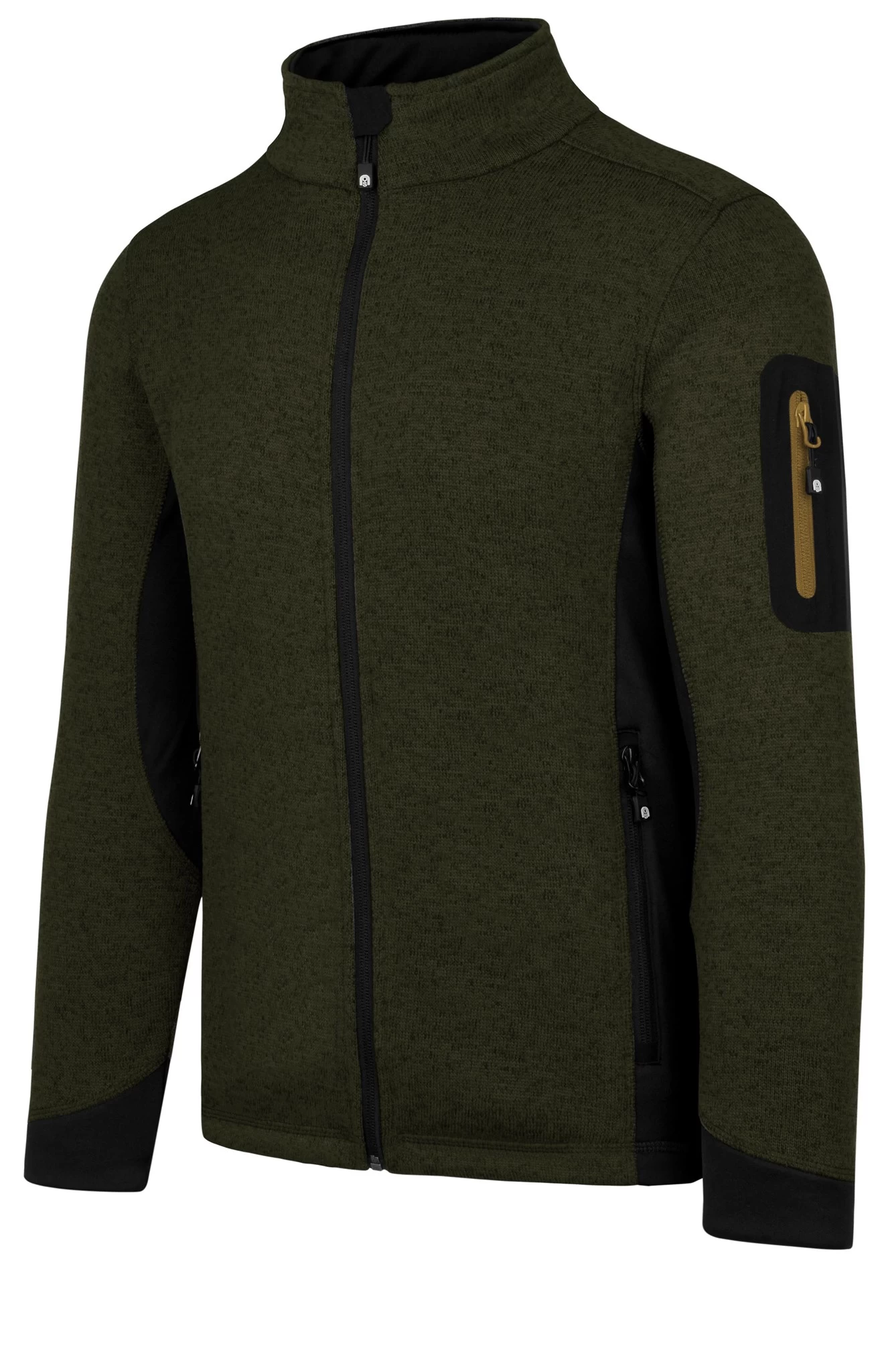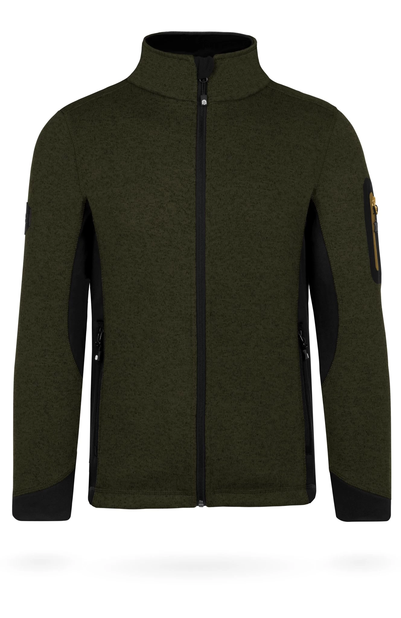 Eine angenehme, wärme spendende Strick-Fleecjacke mit ansprechendem Design und nützlichen Details. Ein treuer Begleiter, sobald die Tage kälter werden oder die Temperaturen nach der Kältestarre wieder steigen. Die Innenseite ist mit einer Fleeceschicht angeraut. Die robuste Oberfläche aus Strickfleece ist angenehm glatt gestrickt, damit man nicht in der Natur an Ästen oder unter der Jacke am Reißverschluss hängen bleibt. Es wärmt nicht nur zusätzlich, sondern liegt auch angenehm weich auf der Haut. Auf der Reise, beim Wandern oder Campen ist sie sehr beliebt aber auch genauso abends beim Grillen unter freiem Himmel zusammen mit Freunden und Familie vor einer gemütlichen Waldhütte. Der Frontreißverschluss mit Kinnschutz und Windschutzleiste bietet Schutz vor Kälte und eisigem Wind. Für ein leichtgäniges Öffnen und Schließen des Frontreißverschlusses und der Reißverschlusstaschen wurden zuverlässige Markenreißverschlüsse von YKK verarbeitet. Der Stehkragen mit Neoprenbesatz auf der Innenseite hält den Hals ausreichend warm. Die Armtasche am linken Obaerarm bietet Platz für kleinere Utensilien, die schnell greifbar sein sollten. Das eingefasste, seitliche Neopren unterstützt den Wärmehaushalt und Elastizität auf dynamischen Tagestouren. Die Strick-Fleecejacke dient als idealer Toplayer über dem Merino Pullover an kühlen Tagen oder als wärmender Midlayer unter der Regen- oder Hardshelljacke.