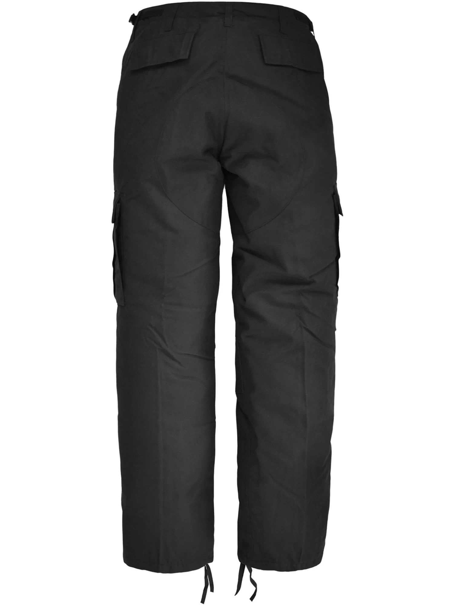 Die strapazierfähige Thermohose „MA1“, die bestens für den Winter geeignet ist, besitzt ein wasserabweisendes Obermaterial. Das wärmende Thermofutter schützt in sämtlichen Lebenslagen vor Kälte. Die verstellbaren Zugbänder am Beinabschluss lassen die Thermohose eng an die Skischuhe ziehen, sodass einfallender Schnee oder eine flatternde Hose verhindert wird. Auch in die Taschen an Oberschenkeln und Gesäß kann durch die abgedeckte Knopfleiste kein Schnee eindringen. Besonders strapazierfähig ist diese Skihose dank verstärkter Bereiche an Knien und Gesäß. Die Dehnfalte am Knie sorgt für mehr Bewegungsfreiheit, ohne dass das Hosenbein nach oben rutscht. Stellen Sie die Taillenweite komfortabel und individuell für sich ein, je nachdem ob Sie einen warmen Pullover in den Hosenbund stecken, oder lieber darüber tragen möchten. Die Weitenverstellung funktioniert mittels der beiden seitlichen Bänder mit Metallschnallen. Zusätzlich verfügt der Bund über 5 Gürtelschlaufen. Der angenhme Tragekomfort der Cargo Winterhose erhöht sich durch das angeraute, weiche Thermofutter.