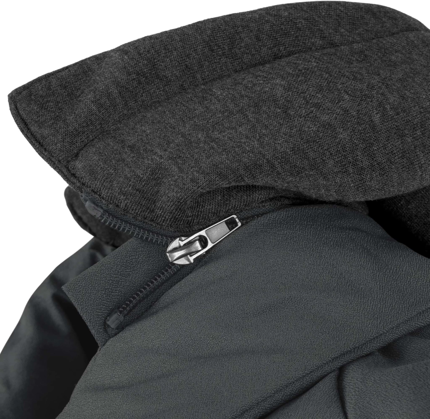 • Per Druckknopf + Reißverschluss abnehmbare Kapuze