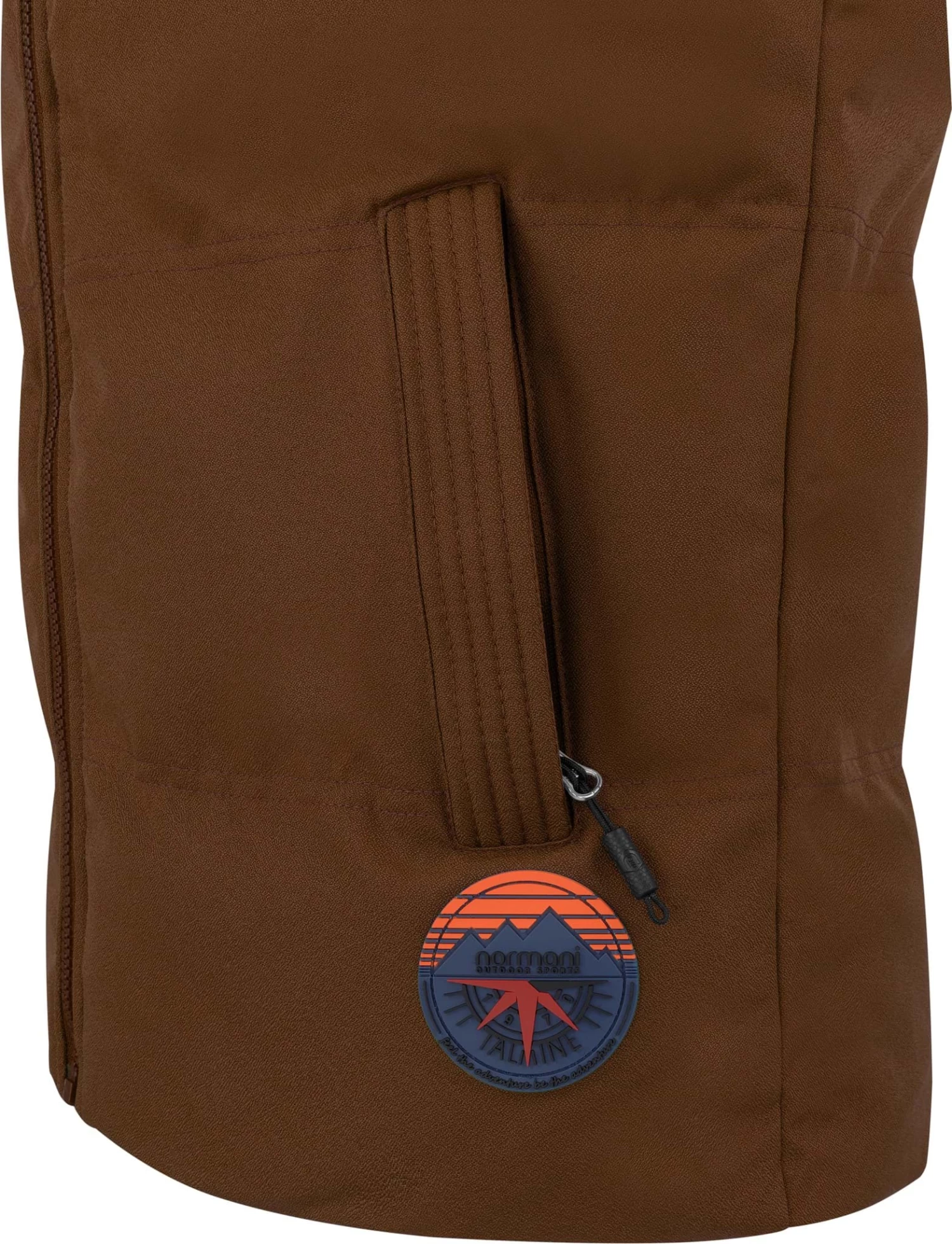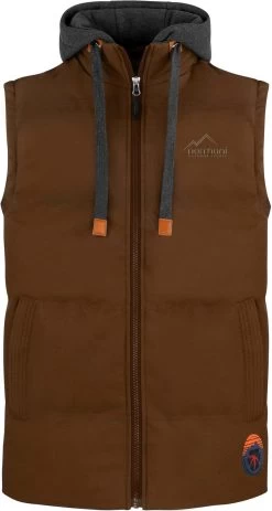 Wenn der Oberkörper etwas zusätzliche Wärme benötigt. Die vielseitige „Talmine“ Weste sorgt mit ihrer großzügigen Wattierung für Wärme und Komfort im Berg- und Naturerlebnis oder für den urbanen Kurzausflug im Großstadtdschungel. In den kälteren Monaten schützt die dicke Wattierung und das recycelte, winddichte Obermaterial hält doppelt warm. Die effiziente, silikonbeschichtete Kunstfaserfüllung erreicht einen hohen Isolationswert, dank der starken Bauschkraft, die die Luft erfolgreich einschließt. Vorteil der Polyesterfüllung ist die Resistenz gegenüber Feuchtigkeit, es trocknet schnell und wärmt auch im feuchten Zustand den gesamten Rumpf. In die zwei seitlichen Eingriffstaschen mit SAB-Reißverschlüssen können Sie Handy oder Portemonnaie sicher transportieren. Autoschlüssel lassen sich in der Innentasche sicher aufbewahren. Die Kapuze mit Kordelzug aus Sweatmaterial lässt sich per Reißverschluss und Druckknöpfen abnehmen. Der Stehkragen hält eisigen Wind von Hals und Nacken fern. Das Logopatch am Abschlussbund verleiht der Weste ihren dynamischen Look. Der Schnitt ist Regular-Fit und bietet frei bewegliche Arme, was bei sportlichen Aktivitäten wie Wandern oder Downhill von Vorteil ist.