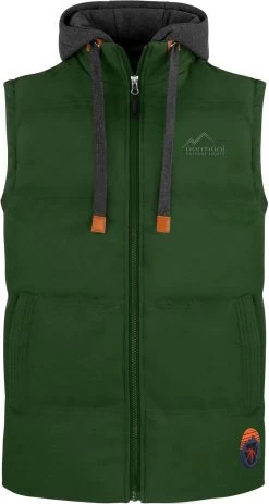 Wenn der Oberkörper etwas zusätzliche Wärme benötigt. Die vielseitige „Talmine“ Weste sorgt mit ihrer großzügigen Wattierung für Wärme und Komfort im Berg- und Naturerlebnis oder für den urbanen Kurzausflug im Großstadtdschungel. In den kälteren Monaten schützt die dicke Wattierung und das recycelte, winddichte Obermaterial hält doppelt warm. Die effiziente, silikonbeschichtete Kunstfaserfüllung erreicht einen hohen Isolationswert, dank der starken Bauschkraft, die die Luft erfolgreich einschließt. Vorteil der Polyesterfüllung ist die Resistenz gegenüber Feuchtigkeit, es trocknet schnell und wärmt auch im feuchten Zustand den gesamten Rumpf. In die zwei seitlichen Eingriffstaschen mit SAB-Reißverschlüssen können Sie Handy oder Portemonnaie sicher transportieren. Autoschlüssel lassen sich in der Innentasche sicher aufbewahren. Die Kapuze mit Kordelzug aus Sweatmaterial lässt sich per Reißverschluss und Druckknöpfen abnehmen. Der Stehkragen hält eisigen Wind von Hals und Nacken fern. Das Logopatch am Abschlussbund verleiht der Weste ihren dynamischen Look. Der Schnitt ist Regular-Fit und bietet frei bewegliche Arme, was bei sportlichen Aktivitäten wie Wandern oder Downhill von Vorteil ist.