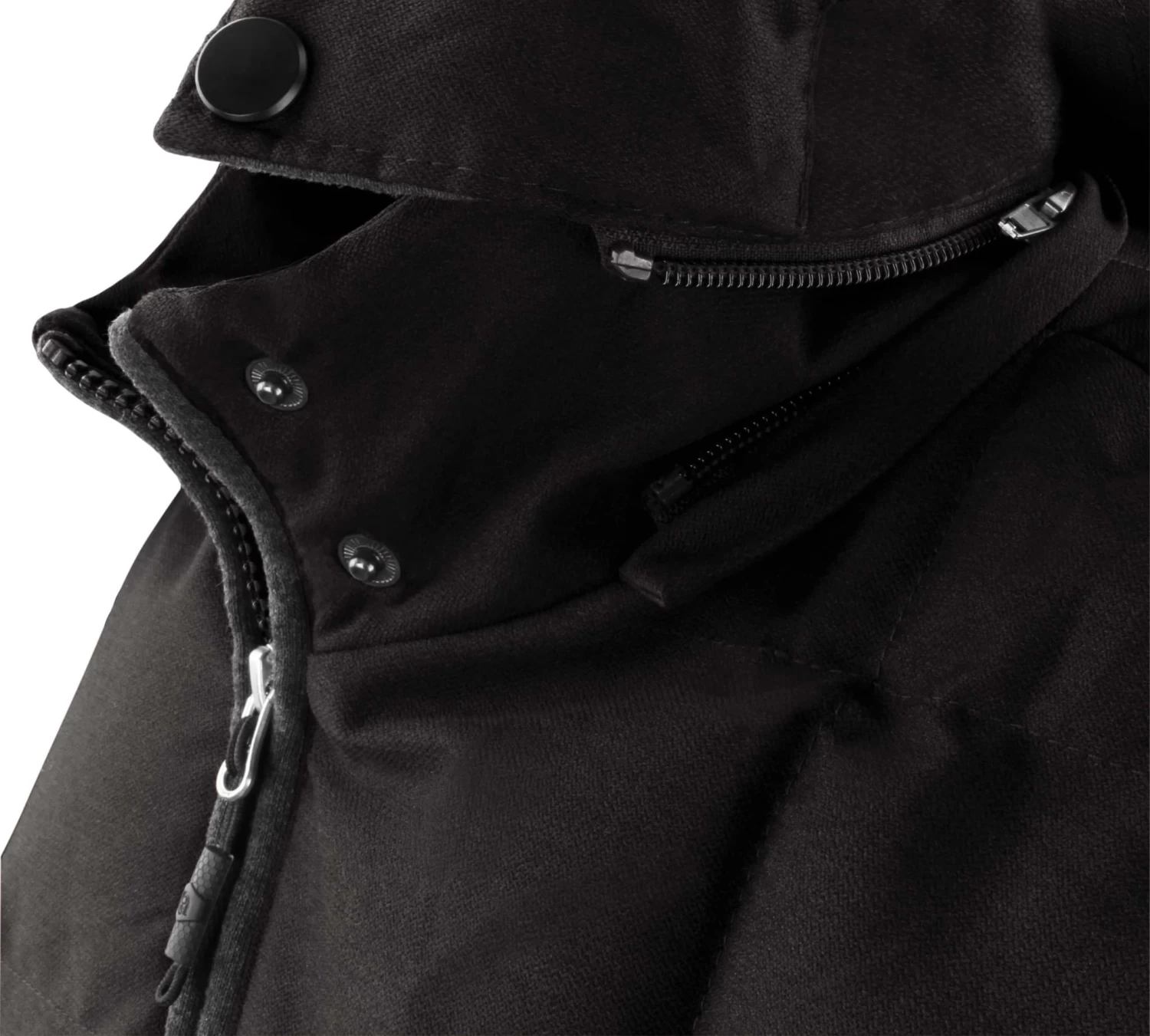 • Per Druckknopf + Reißverschluss abnehmbare Kapuze