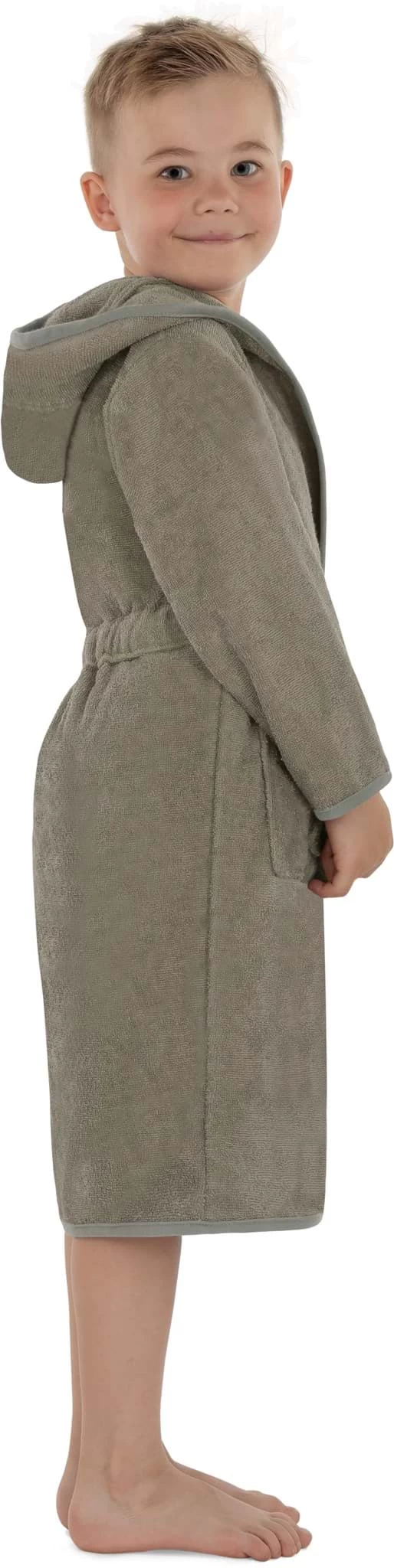 Der Kinderbademantel aus 100 % natürlicher und schadstoffreier Bio-Baumwolle sorgt dafür, dass die Kleinen trocken und warm bleiben.