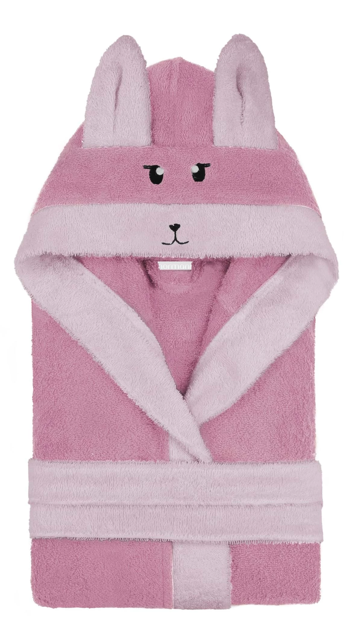 Durch die bestickte Kapuze mit Tiergesichtern bringt der Kinder Bademantel Spaß und Gemütlichkeit. Gleichzeitig sorgt das dichte Bio-Baumwollmaterial dafür, dass die Kleinen trocken und warm bleiben.