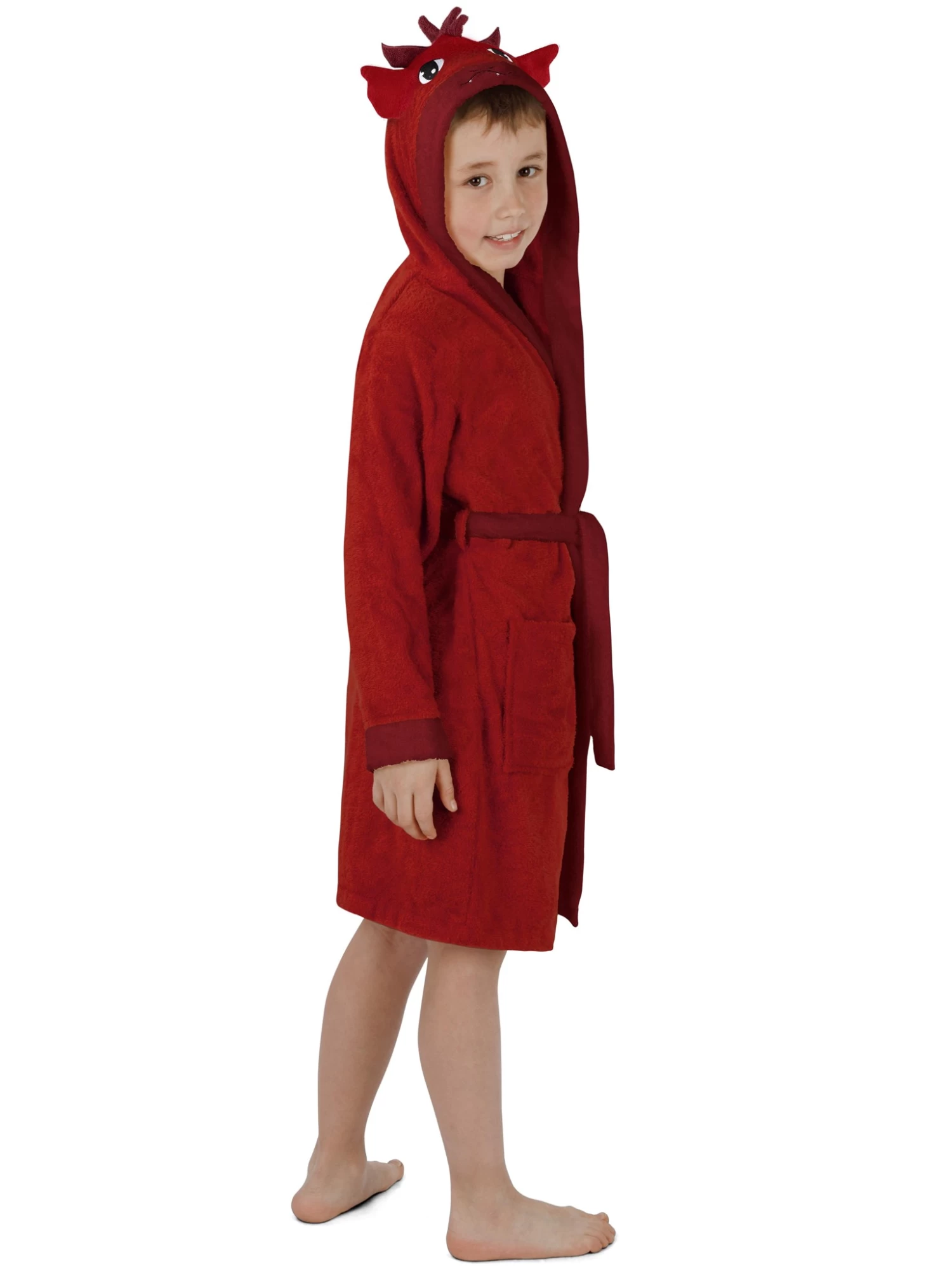 Durch die bestickte Kapuze mit Tiergesichtern bringt der Kinder Bademantel Spaß und Gemütlichkeit. Gleichzeitig sorgt das dichte Bio-Baumwollmaterial dafür, dass die Kleinen trocken und warm bleiben.