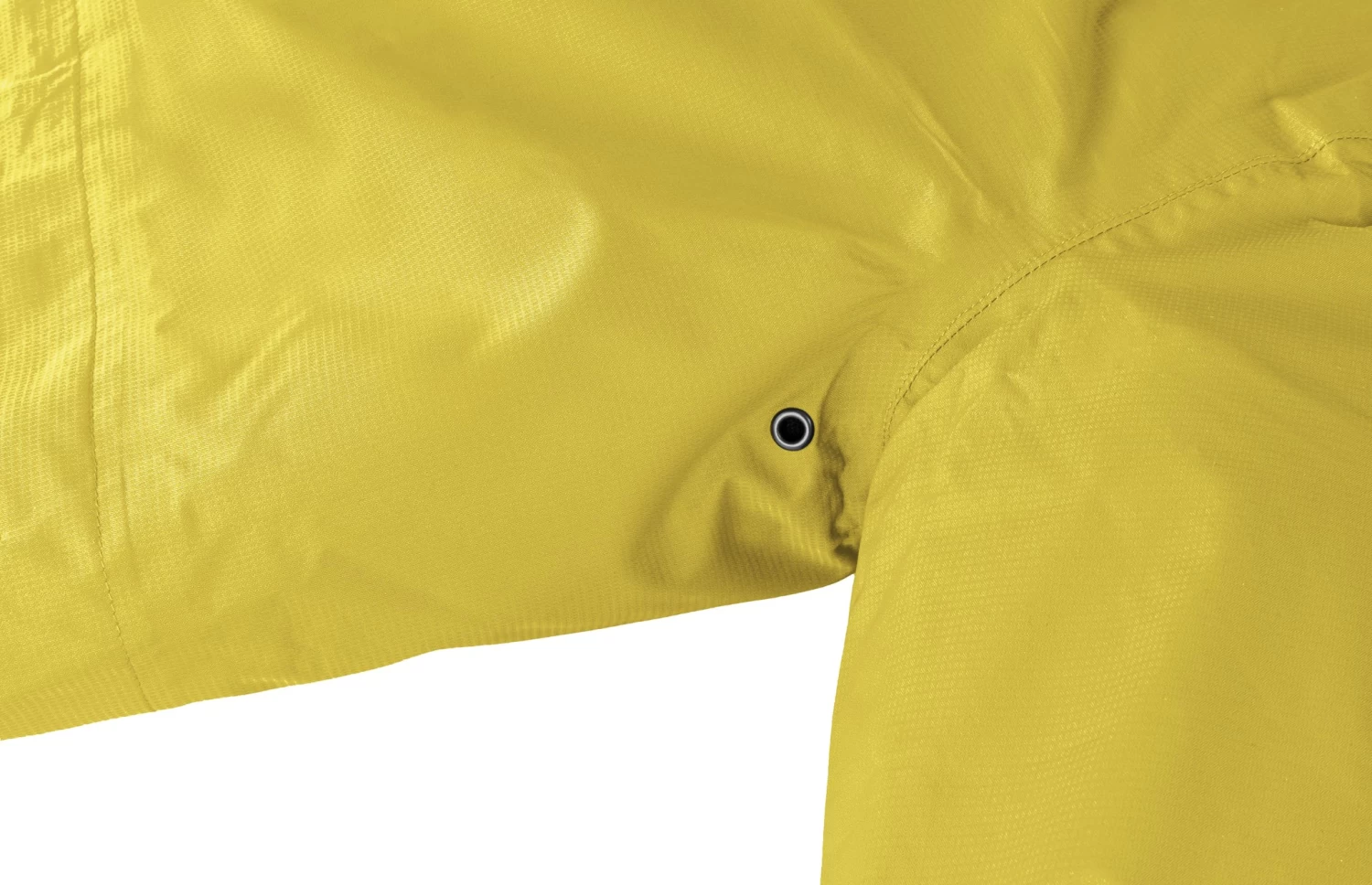 Für die Kleinen, die sich von schlechtem Wetter nicht die Laune verderben lassen. Ob mit Freunden draußen auf dem Spielplatz, auf dem Fahrrad oder auf dem täglichen Weg zu Schule, die Regenjacke hält garantiert den Oberkörper trocken. Das strapazierfähige, schmutzunempfindliche 300T Polyestermaterial mit versiegelten Nähte ist vollkommen wasser- und winddicht. Der hochstehende Kragen und die elastische Kapuze mit Klettriegel schützen zusätzlich Hals und Kopf. Bei sportlichen Aktivitäten kommt die erfrischende Luftzirkulation nicht zu kurz. Das feuchtigkeitsregulierende Fleecefutter reicht Innen bis in die Arme und leitet Feuchtigkeit und Schweiß vom Körper weg, sodass die Jacke nicht am Körper klebt. Auch an kälteren Tagen mit leichtem Schneefall wirkt das weiche Fleecefutter angenehm wärmend. Auf dem Rücken sind zwei Belüftungsschlitze eingelassen um ausreichende Luftzirkulation zu erreichen. Die Softshelljacke kann somit das ganze Jahr, bei jedem Wetter getragen werden. Sie wiegt nicht viel, ist atmungsaktiv, kann klein verpackt im Transportbeutel verstaut werden und besitzt elastische Armöffnungen. Die zwei aufgesetzten Taschen, lassen das ein oder andere Fundstück aufbewahren aber auch kalte Hände finden dort ihren Platz. Die Regenjacke wird ökologisch nachhaltig hergestellt. Es wird vollkommen auf nicht biologisch abbaubare, gesundheitsschädliche Phthalate (Weichmacher) verzichtet.