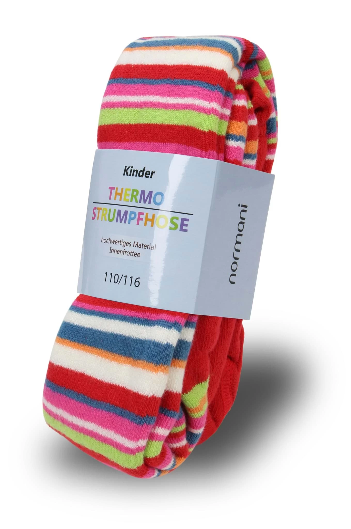 Die warme, frotteegefütterte Kinder Thermostrumpfhose mit hübschen, bunten Ringeln fühlt sich mollig weich an. Sie ist mit einem Zwickel sowie einem Komfortbündchen versehen und ist dank Elasthan schön elastisch, sodass Ihr Kind sich frei bewegen kann.