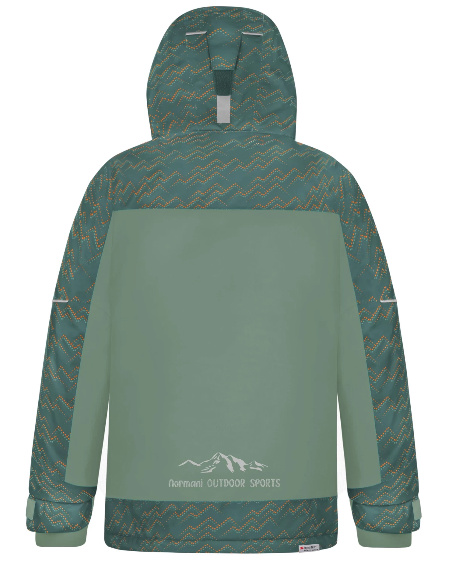 Auf die Piste, fertig, und los geht’s! Ob für erfahrene Pistensurfer oder für die erste Fahrt auf den Skiern oder dem Snowboard – unsere farbenfrohe Kinderskijacke „Dawson“schützt zuverlässig vor Schnee und Kälte. Sowohl die verwendeten Materialien, als auch die 140 g Füllung bestehen zu 100 % aus recyceltem Polyester. In einem modernen Recyclingverfahren wurde das Polyester zu 100 % aus recycelten PET Flaschen gewonnen. Durch Zerkleinern, Mahlen, Waschen, Schmelzen, Spinnen und Texturieren wurde aus den PET Flaschen ein neuer Stoff gewonnen. Abhängig von der Größe der Skijacke wurden durchschnittlich 15 PET Flaschen pro Jacke recycelt. Die verarbeitete 2-Lagen-Polyurethanmembran sorgt in Kombination mit den verschweißten Nähten für eine Wassersäule von 12.000 mm und eine Atmungsaktivität von 5.000 g/m² pro 24h. Somit ist die Skijacke komplett wasser- und winddicht, sorgt jedoch durch das Fleece auf der Innenseite gleichzeitig für eine angenehme Wärme ohne zu überhitzen. Um zusätzlich vor eindringendem Schnee zu schützen, ist die Skijacke mit einem Schneefang am Rumpf ausgestattet, der durch Druckknöpfe befestigt werden kann. Außerdem verfügt die Jacke über Fleeceeinsätze mit Daumenloch an den Armöffnungen, sodass die Hände auch ohne Handschuhe warm gehalten werden. Die Jacke besitzt insgesamt vier Reißverschlusstaschen; davon sind zwei Seitentaschen, eine Brusttasche und eine Armtasche, zum Verstauen des Skipasses. Für ein leichtgängiges Öffnen des Frontreißverschlusses und der einzelnen Taschen sorgen die wasserdichten Markenreißverschlüsse von SAB. Eine weitere Tasche befindet sich auf der Innenseite der Jacke, worin sich die Skibrille oder Sturmhaube verstauen lassen. Die Kapuze der Jacke lässt sich mittels eines Klettverschlusses in ihrer Größe verstellen, sodass auch bequem eine Mütze darunter getragen werden kann. Weiterhin kann die Kapuze auch durch Knöpfe am Kragen und einen Reißverschluss im Nacken vom Rest der Jacke gelöst werden. Für den optimalen Sitz sorgt der Kordstopper, der in der Hüfte der Jacke verarbeitet ist und die mit Klettstreifen verstellbaren Armöffnungen. Dadurch kann die Jacke an Hüfte und Handgelenken beliebig angepasst werden. Bei den Reflektoren an den Reißverschlusstaschen, auf der Brust, an den Oberarmen, auf der Kapuze und bei der Bergkette am unteren Rücken handelt es sich um Reflektoren der Marke 3MTM ScotchliteTM Reflective Material. Die Reflektoren sorgen durch ein frühzeitiges Erkennen bei Dämmerung für die Sicherheit ihres Kindes. Weiterhin beeindruckt die Skijacke durch ihr farbenfrohes, kontrastreiches Design, welches dafür sorgt, dass Sie Ihr Kind auf der Piste immer bestens im Blick haben.