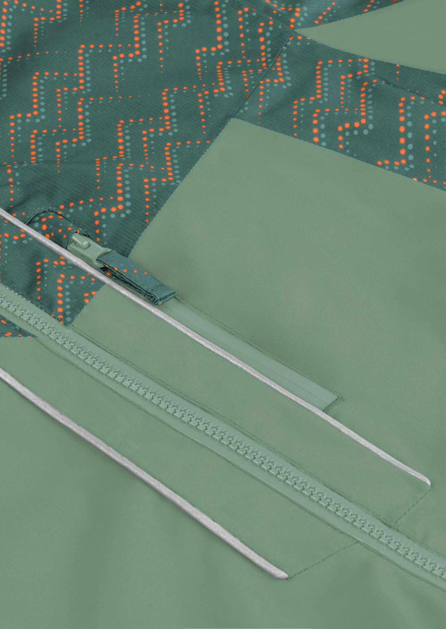 Die Langlebigkeit unserer Produkte liegt uns besonders am Herzen. Daher versuchen wir unsere Produkte so zu entwerfen, dass sie von Ihnen so lange wie möglich verwendet werden können. Aus diesem Grund ist unsere Kinderskijacke „Dawson“mit unserer „Grow out“ Funktion ausgestattet. Diese Funktion ermöglicht es Ihnen, das Innenfutter um ein paar Zentimeter zu verlängern, sodass die Jacke auch nach einem Wachstumsschub immer noch passt und so für eine weitere Saison verwendet werden kann. Um das Innenfutter zu verlängern, drehen Sie die Arme auf links und halten Sie Ausschau nach zwei grünen Nähten. Diese Nähte können bedenkenfrei gelöst werden, ohne andere unerwünschte Nebeneffekte hervorzurufen.