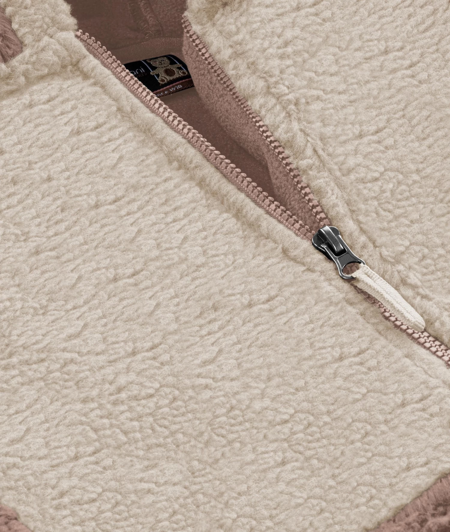 Der Kinderoverall „Balivanich“ besteht zu 100% aus recyceltem Teddyfleece, das aus aufbereiteten PET-Flaschen gewonnen wurde. Der Teddyfleece-Stoff ist nicht nur außergewöhnliche weich, sondern verleiht auch ein kuscheliges Gefühl auf der Haut. Ausgestattet mit einer schützenden Kapuze, bewahrt der Overall kleine Abenteurer vor den kühleren Temperaturen. Das besondere Highlight sind die niedlichen Ohren, die an der Kapuze angebracht sind – ein verspieltes Detail, das dem Overall einen charmanten Touch verleiht. Das Öffnen und Schließen des Overalls gestaltet sich mühelos dank des hochwertigen Markenreißverschlusses von SAB. Praktisch und funktional können sowohl die Ärmel als auch die Beine des Overalls umgekrempelt werden, um Hände und Füße warm zu halten. Der farbliche Kontrast im Bauchbereich gibt dem Overall eine verspielte Note. Zusätzlich setzen die farblichen Akzente an Ohren, Kapuzenrand, sowie den Bündchen an Armen und Beinen den Overall besonders in Szene und verleihen ihm einen liebenswerten, kindlichen Charme. Zusammengefasst ist der Kinderoverall nachhaltig, komfortabel, warm und voller verspielter Details für die kleinen Entdecker.