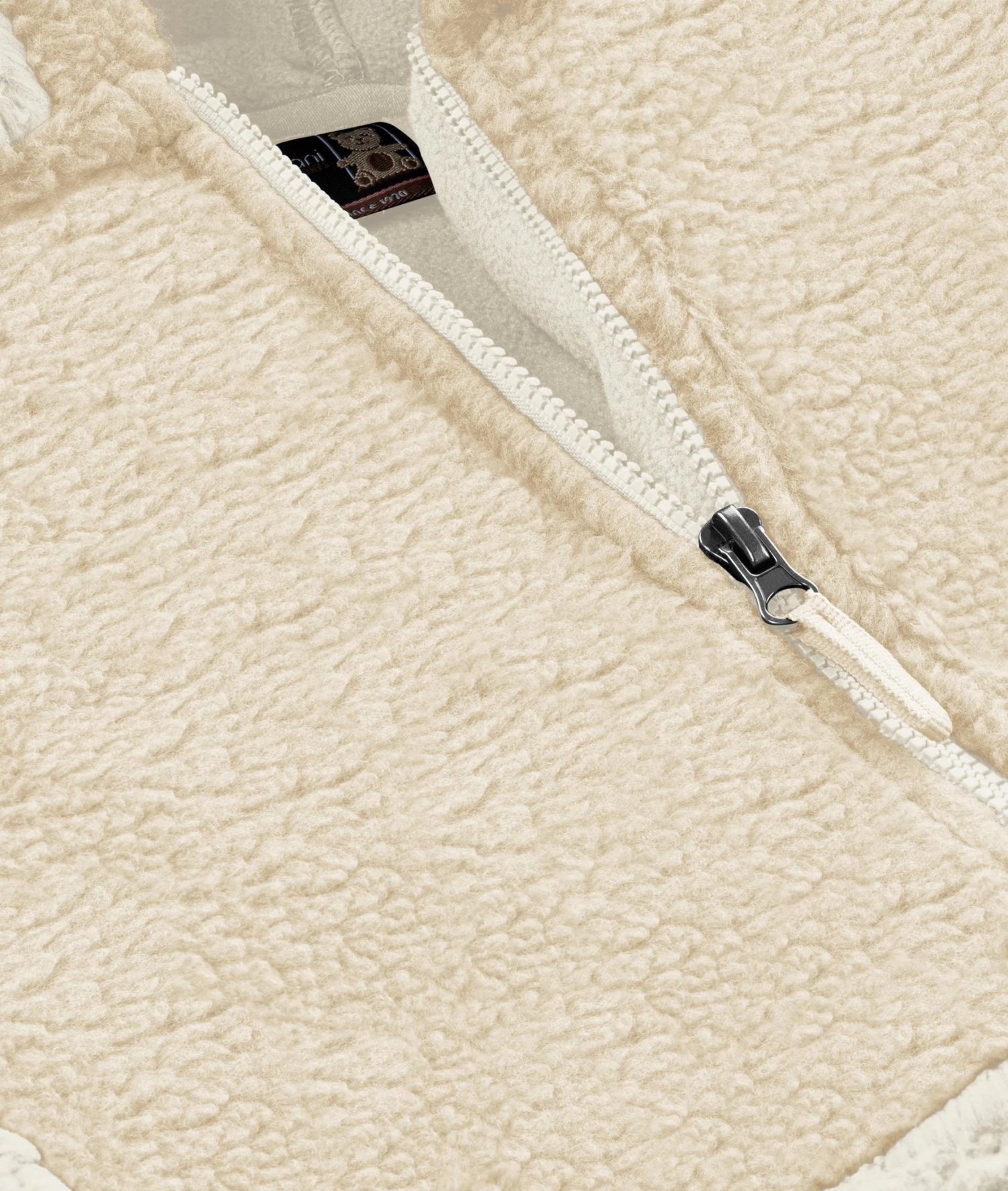 Der Kinderoverall „Balivanich“ besteht zu 100% aus recyceltem Teddyfleece, das aus aufbereiteten PET-Flaschen gewonnen wurde. Der Teddyfleece-Stoff ist nicht nur außergewöhnliche weich, sondern verleiht auch ein kuscheliges Gefühl auf der Haut. Ausgestattet mit einer schützenden Kapuze, bewahrt der Overall kleine Abenteurer vor den kühleren Temperaturen. Das besondere Highlight sind die niedlichen Ohren, die an der Kapuze angebracht sind – ein verspieltes Detail, das dem Overall einen charmanten Touch verleiht. Das Öffnen und Schließen des Overalls gestaltet sich mühelos dank des hochwertigen Markenreißverschlusses von SAB. Praktisch und funktional können sowohl die Ärmel als auch die Beine des Overalls umgekrempelt werden, um Hände und Füße warm zu halten. Der farbliche Kontrast im Bauchbereich gibt dem Overall eine verspielte Note. Zusätzlich setzen die farblichen Akzente an Ohren, Kapuzenrand, sowie den Bündchen an Armen und Beinen den Overall besonders in Szene und verleihen ihm einen liebenswerten, kindlichen Charme. Zusammengefasst ist der Kinderoverall nachhaltig, komfortabel, warm und voller verspielter Details für die kleinen Entdecker.