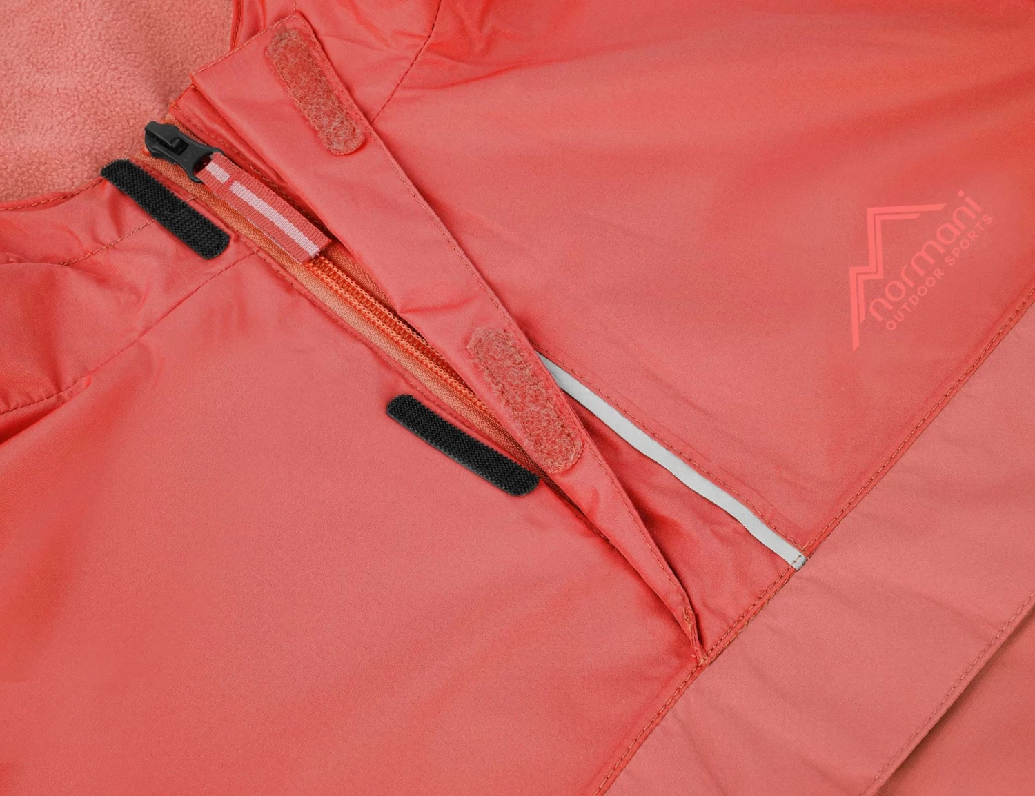 Ein Kinder Windbreaker für Mädchen und Jungen, die sich von schlechtem, kaltem Wetter nicht abhalten lassen nach Draußen zu gehen. Das Obermaterial ist für den maximalen Wetterschutz absolut wasserdicht und winddicht. Das strapazierfähige RipStop Gewebe ist beim Rodeln, Schlittschuhfahren, Skifahren oder dem Ausflug in den Wald abriebfest und erhöht die Lebensdauer des Materials. Das weiche, durchgehende Fleecefutter isoliert an den kältesten Wintertagen. Die Arme sind mit einer zusätzlichen Kunstfaserwattierung ausgestattet. Feine, kindgerechte Details wie Kordelzug in Kapuze und Saum, Ärmelbündchen mit elastischer Einfassung, eine ergonomisch geformte, gefütterte, Kapuze sorgen nicht nur für einen gemütlichen Tragekomfort, sondern runden die Funktionalität der Schlupfjacke ab. Reflektierende Designelemente als Reflekorstreifen an Windschutzleiste und Seitentaschen sorgen für eine zunehmende Sicherheit und Sichtbarkeit. Auf der Rückseite ist der Reflektor in Form einer Bergkette integriert, um einen rundum Schutz zu bieten. Die seitlichen Einschubtaschen und die geräumige Kängurutasche sind nicht nur mit einer Fleeceschicht überzogen und bieten den Händen mollige Wärme, sondern bieten gleichzeitig ausreichend Stauraum um sämtliche Utensilien für ein kurzes Abenteuer bereitzuhalten. Verlustsicher, sind beide Seitentaschen mit YKK-Reißverschlüssen versehen. Draußen sein bedeutet, den Wetterbedingungen ausgesetzt zu sein und nicht immer spielt das Wetter auf der Tagestour nach den eigenen Vorstellungen. Deshalb lässt sich die Schlupfjacke über den Pullover ziehen um obendrein einen warmen, wetterfesten Tragekomfort zu gewährleisten. Die kontrastierende Outerwear Optik mit farbenfrohen Akzenten sorgt auch an tristen Tagen für eine gehobene Stimmung und ist ein echter Blickfang.