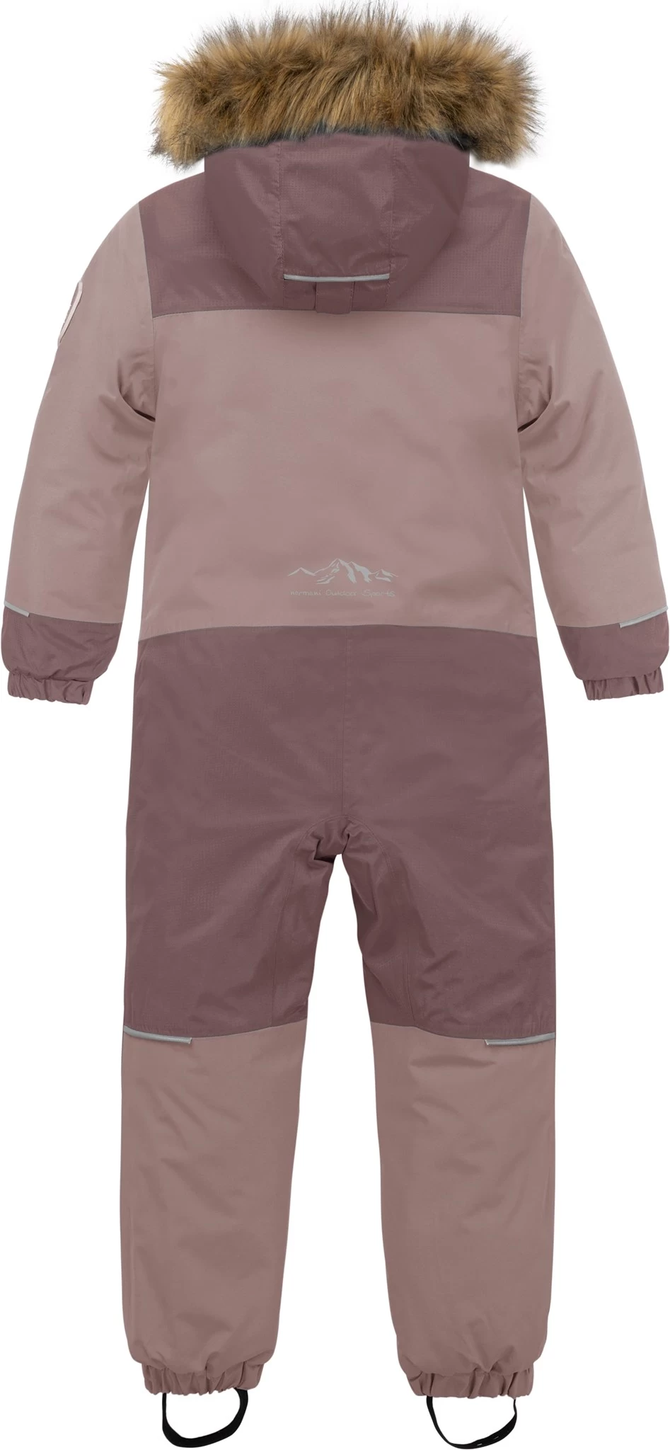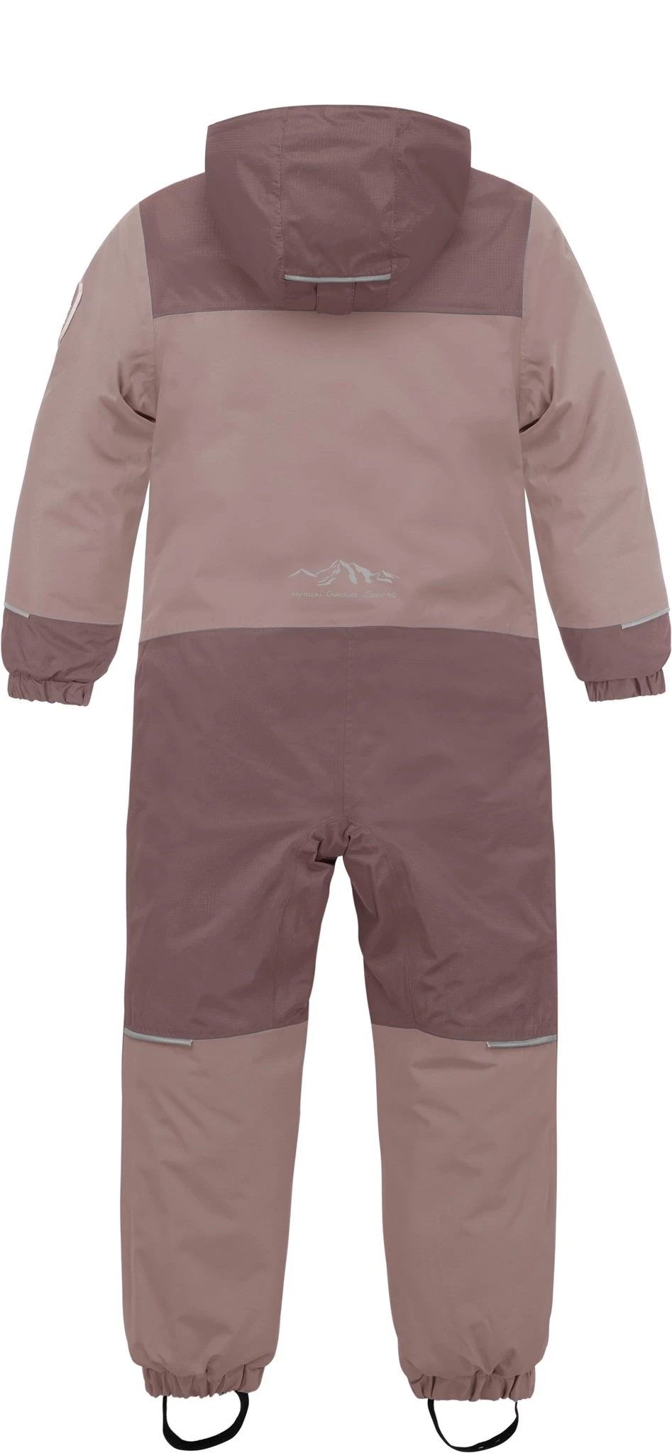 Der strahlend blaue Himmel, die geschlossene Schneedecke und der malerische Blick ins, wie mit Puderzucker bestreute, Tal, wecken die tief sitzende Wintersportlust bei kleinen Abenteurern. Mit dem recyceltem Kinder Winter Overall „Kular“ werden kleine Entdecker sicher und nachhaltig vor eindringender Kälte und Schnee geschützt, ohne an Atmungsaktivität einzubüßen. Der Overall besteht zu 100 % aus recyceltem Polyester. In einem modernen Recyclingverfahren wurde das Polyester zu 100 % aus recycelten PET Flaschen gewonnen. Durch Zerkleinern, Mahlen, Waschen, Schmelzen, Spinnen und Texturieren wurde aus den PET Flaschen ein neuer Stoff gewonnen. Abhängig von der Größe des Overalls wurden 20 – 38 PET Flaschen pro Overall recycelt. Für zuverlässige Wasserdichte auf der Piste, ohne zu überhitzen, sorgt die Membran aus Polyurethan auf der Innenseite des Overalls. Durch die Membran wird eine Wassersäule von 10.000 mm und eine Atmungsaktivität von 5.000 g/m² pro 24h erreicht. Wir legen Wert auf ein leichtgängiges Öffnen und Schließen des Hauptreißverschlusses und der einzelnen Taschen, daher wurden lediglich Markenreißverschlüsse von SBS für den Overall verwendet. Neben dem Hauptreißverschluss verfügt der Overall außerdem über zwei seitliche Reißverschlusstaschen, in denen gefundene Schätze verlustfrei transportiert werden können. Zudem besitzt der Overall eine Reißverschlusstasche am Unterarm. In dieser kann der Skipass sicher verstaut und am Skilift gescannt werden. Sowohl die Kapuze als auch der Fellrand lassen sich nach Belieben vom Rest des Overalls trennen. Der Fellrand kann mittels Reißverschluss von der Kapuze abgenommen werden. Die Kapuze kann wiederum durch Knöpfe vom Kragen des Overalls gelöst werden. Für zusätzlichen Schutz vor Kälte sorgen die Gamaschen mit Daumenöffnung am Handgelenk und die Windschutzleiste mit Zippergarage am Hauptreißverschluss. Angebrachte Reflektoren an den Reißverschlusstaschen, Armabschlüssen, unter den Knien auf Vorder- und Rückseite, sorgen für eine bessere Sichtbarkeit Ihres Kindes bei Dämmerung. Weiterhin reflektierenden die Reißverschlusspuller mit unserem Logo und unsere bekannte Bergkette auf dem unteren Rücken. Damit die Bewegungsfreiheit der angehenden Wintersportler nicht eingeschränkt wird, ist der Overall im Schritt mit einer Zwickel ausgestattet. Für einen besseren Sitz am Bein, verfügt der Overall über Schlaufen am Fußende, die mittels Knöpfen verstellt oder auch ganz abgenommen werden können. Das zweifarbige, kindgerechte Design wirkt verspielt, abwechslungsreich und stimmig, betont wird es weiterhin durch den farblich abgestimmten Rubber auf dem linken Oberarm.