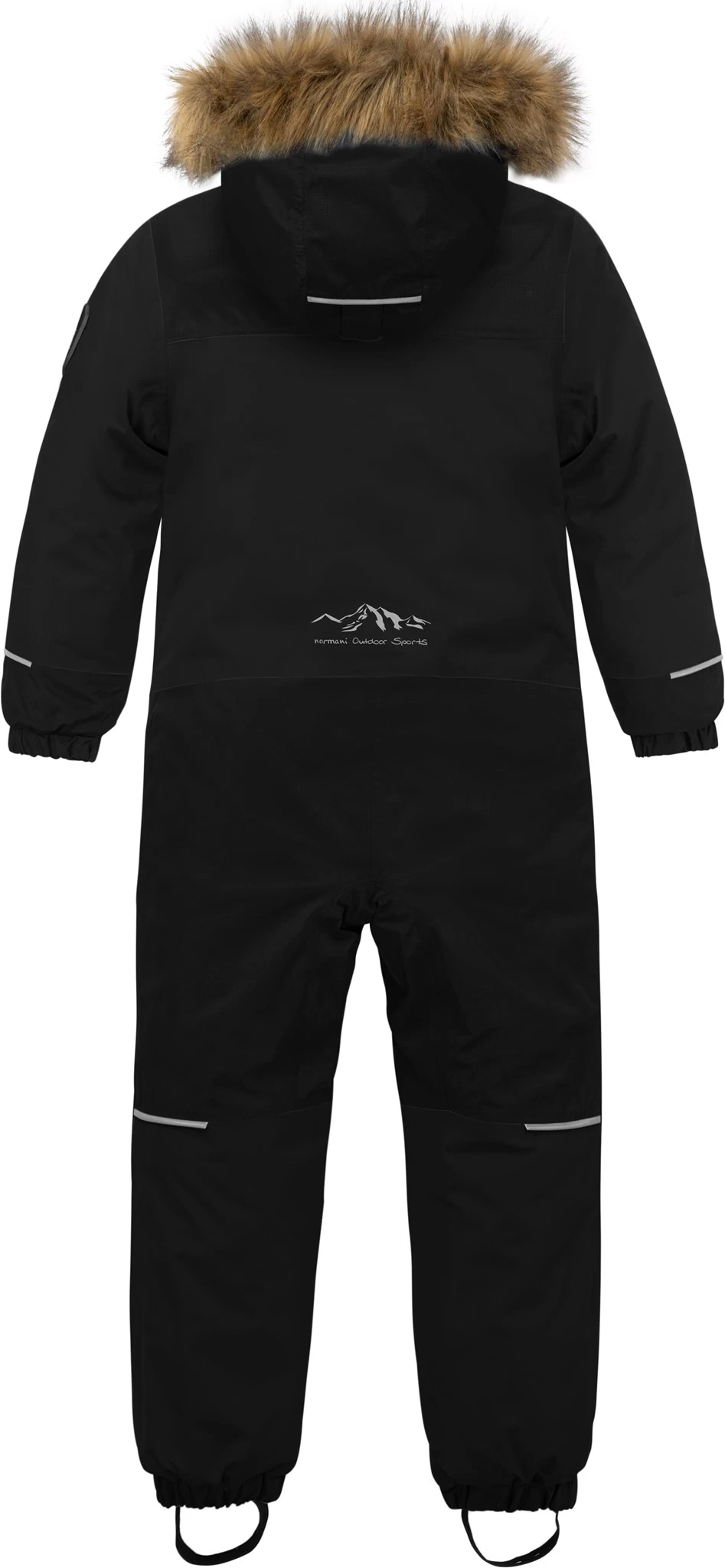 Der strahlend blaue Himmel, die geschlossene Schneedecke und der malerische Blick ins, wie mit Puderzucker bestreute, Tal, wecken die tief sitzende Wintersportlust bei kleinen Abenteurern. Mit dem recyceltem Kinder Winter Overall „Kular“ werden kleine Entdecker sicher und nachhaltig vor eindringender Kälte und Schnee geschützt, ohne an Atmungsaktivität einzubüßen. Der Overall besteht zu 100 % aus recyceltem Polyester. In einem modernen Recyclingverfahren wurde das Polyester zu 100 % aus recycelten PET Flaschen gewonnen. Durch Zerkleinern, Mahlen, Waschen, Schmelzen, Spinnen und Texturieren wurde aus den PET Flaschen ein neuer Stoff gewonnen. Abhängig von der Größe des Overalls wurden 20 – 38 PET Flaschen pro Overall recycelt. Für zuverlässige Wasserdichte auf der Piste, ohne zu überhitzen, sorgt die Membran aus Polyurethan auf der Innenseite des Overalls. Durch die Membran wird eine Wassersäule von 10.000 mm und eine Atmungsaktivität von 5.000 g/m² pro 24h erreicht. Wir legen Wert auf ein leichtgängiges Öffnen und Schließen des Hauptreißverschlusses und der einzelnen Taschen, daher wurden lediglich Markenreißverschlüsse von SBS für den Overall verwendet. Neben dem Hauptreißverschluss verfügt der Overall außerdem über zwei seitliche Reißverschlusstaschen, in denen gefundene Schätze verlustfrei transportiert werden können. Zudem besitzt der Overall eine Reißverschlusstasche am Unterarm. In dieser kann der Skipass sicher verstaut und am Skilift gescannt werden. Sowohl die Kapuze als auch der Fellrand lassen sich nach Belieben vom Rest des Overalls trennen. Der Fellrand kann mittels Reißverschluss von der Kapuze abgenommen werden. Die Kapuze kann wiederum durch Knöpfe vom Kragen des Overalls gelöst werden. Für zusätzlichen Schutz vor Kälte sorgen die Gamaschen mit Daumenöffnung am Handgelenk und die Windschutzleiste mit Zippergarage am Hauptreißverschluss. Angebrachte Reflektoren an den Reißverschlusstaschen, Armabschlüssen, unter den Knien auf Vorder- und Rückseite, sorgen für eine bessere Sichtbarkeit Ihres Kindes bei Dämmerung. Weiterhin reflektierenden die Reißverschlusspuller mit unserem Logo und unsere bekannte Bergkette auf dem unteren Rücken. Damit die Bewegungsfreiheit der angehenden Wintersportler nicht eingeschränkt wird, ist der Overall im Schritt mit einer Zwickel ausgestattet. Für einen besseren Sitz am Bein, verfügt der Overall über Schlaufen am Fußende, die mittels Knöpfen verstellt oder auch ganz abgenommen werden können. Das zweifarbige, kindgerechte Design wirkt verspielt, abwechslungsreich und stimmig, betont wird es weiterhin durch den farblich abgestimmten Rubber auf dem linken Oberarm.