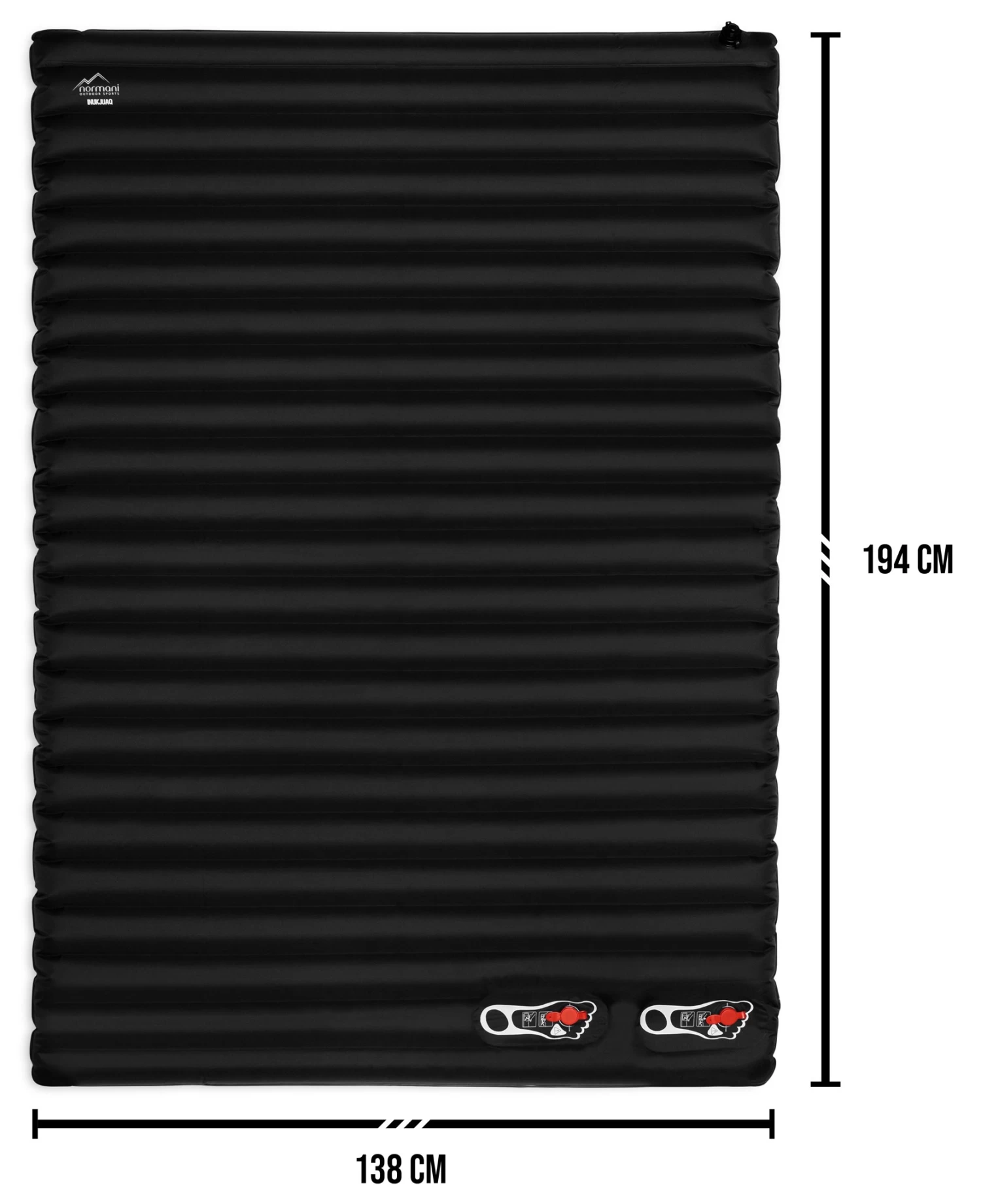 Unsere Isomatte „Inukjuaq“ bietet eine komfortable Schlafmöglichkeit für zwei Personen in der Natur. Die Leitbegriffe bei der Planung waren komfortabel, innovativ und bequem. Mit einer Dicke von 10 cm ist sie besonders bequem und dennoch leicht im Gewicht. Ob für ein Wochenende im Zelt oder auf einer Campingtour, mit Ihrem besten Freund, oder dem Partner – diese breite Liegefläche wurde speziell für Paare und Gruppen entwickelt, um eine erholsame Nachtruhe zu garantieren. Mit einer großzügigen Abmessung von 138 cm Breite und einer Länge von 194 cm bietet sie ausreichend Platz für zwei Erwachsene zum bequemen Ausstrecken und Entspannen. Die weiche und leise Oberfläche verhindert, dass Sie in der Nacht von der Matte rutschen. Die Isolierung erfolgt durch hochwertigen Schaumstoff, der für optimale Wärme in kalten Nächten sorgt und Sie auf felsigen Unterlagen oder feuchtem Boden vor Kälte und Feuchtigkeit schützt. Weiterhin sorgt die Mattenhöhe für eine optimale Wärmeisolierung und bietet gleichzeitig eine angenehme Unterstützung für Ihren Körper, damit Sie eine erholsame Nacht unter freiem Himmel genießen können.