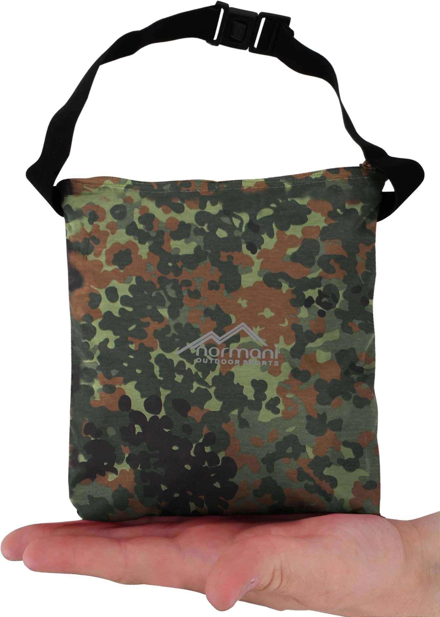Die Bauchtasche mit YKK-Reißverschluss bietet ausreichend Stauraum um auf der Tagestour, Fahrradfahrt oder beim Gassi gehen, wichtige Utensilien, wie Portemonnaie, Mobiltelefon oder Haustürschlüssel sicher vor Nässe aufzubewahren. Zusätzlich dient die Tasche als Packtasche für den Poncho selbst. Per „Stopf-Technik” lässt sich der gesamte Poncho dort verstauen und mit geringen Packmaß wieder im Rucksack verstauen.