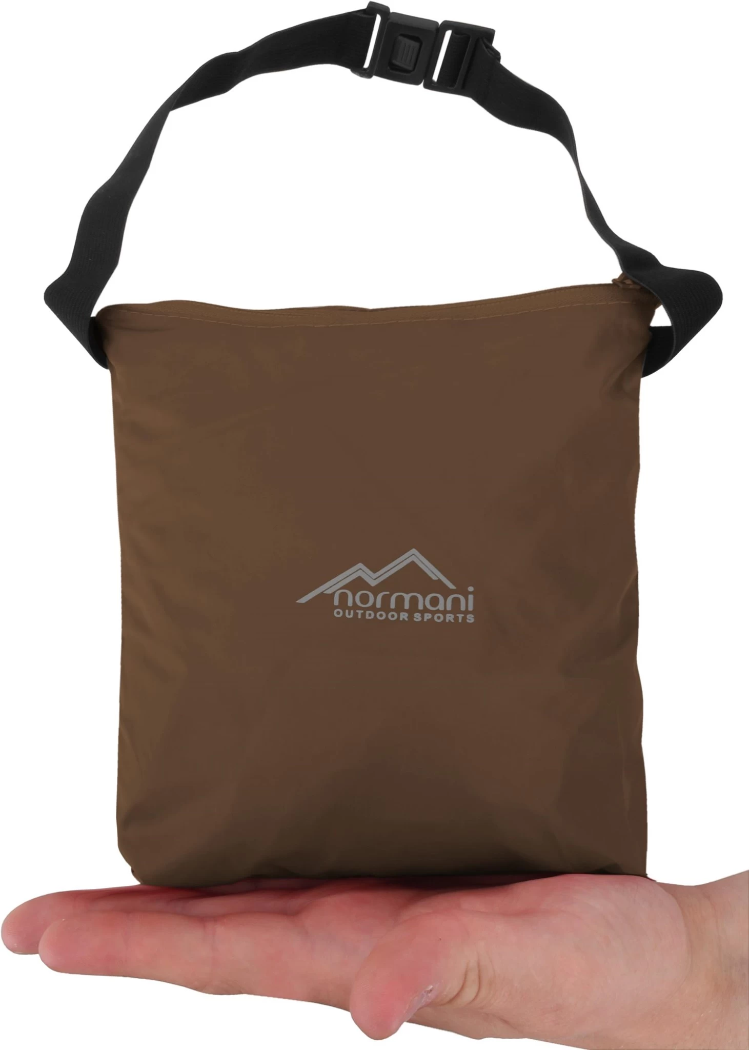 Die Bauchtasche mit YKK-Reißverschluss bietet ausreichend Stauraum um auf der Tagestour, Fahrradfahrt oder beim Gassi gehen, wichtige Utensilien, wie Portemonnaie, Mobiltelefon oder Haustürschlüssel sicher vor Nässe aufzubewahren. Zusätzlich dient die Tasche als Packtasche für den Poncho selbst. Per „Stopf-Technik” lässt sich der gesamte Poncho dort verstauen und mit geringen Packmaß wieder im Rucksack verstauen.