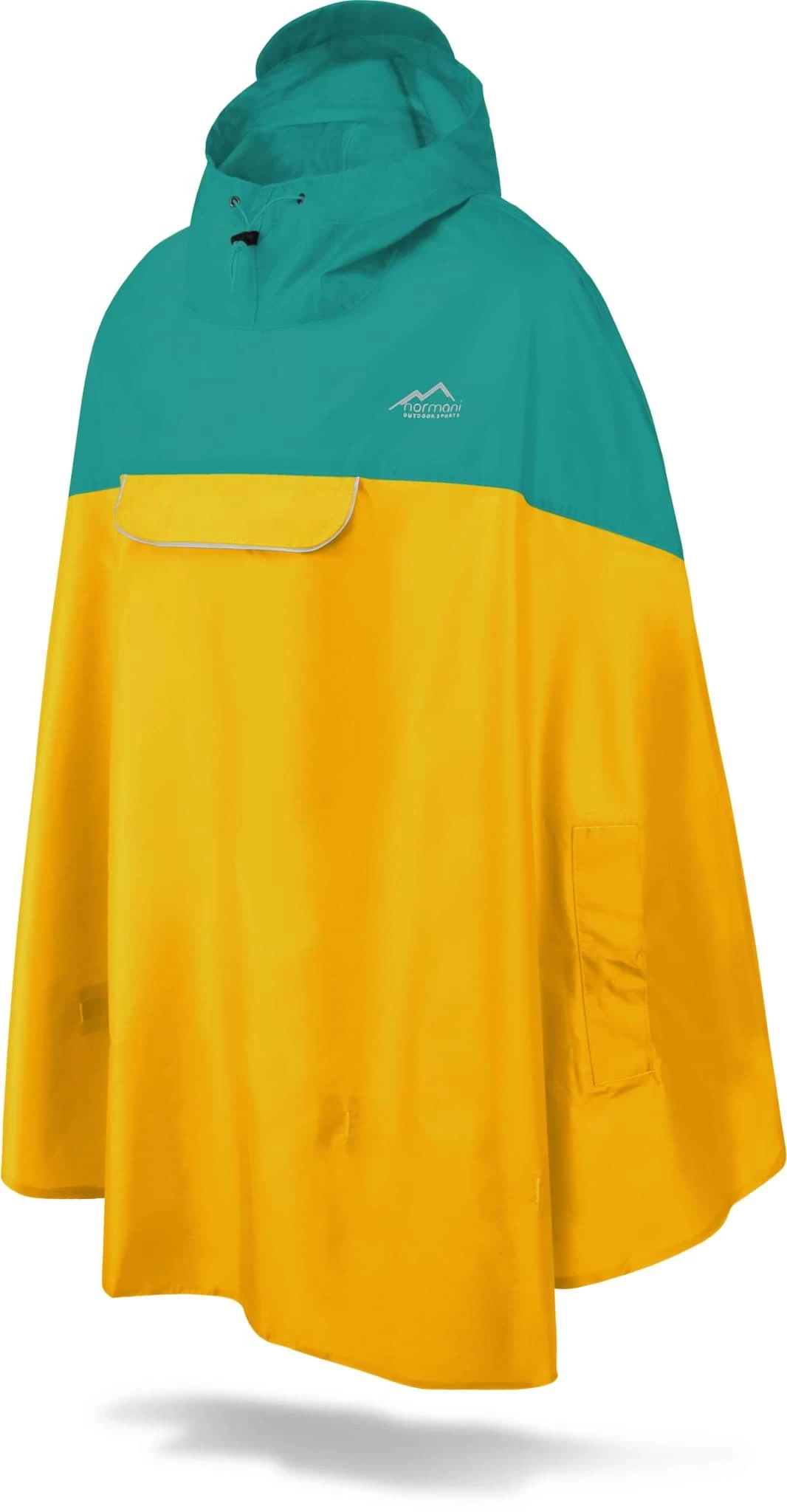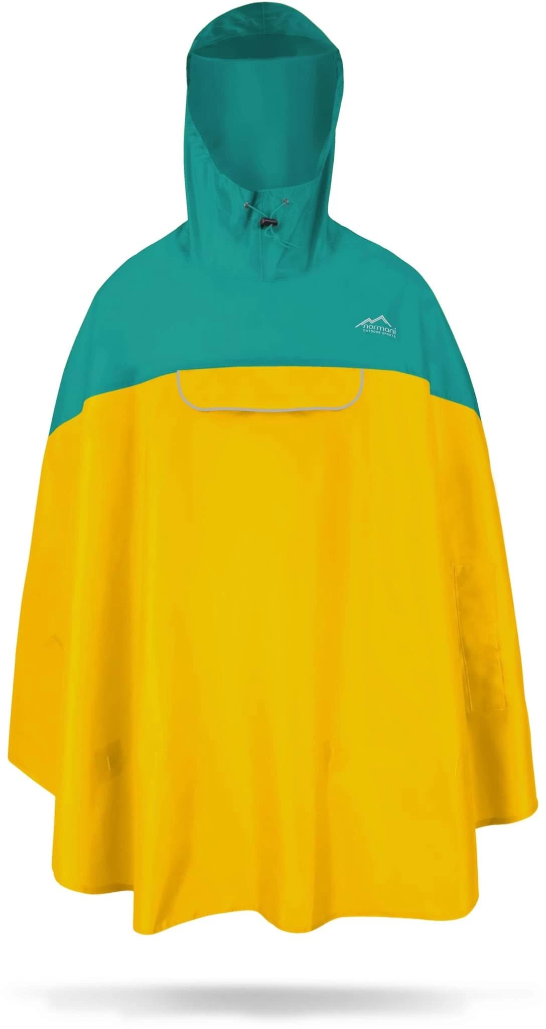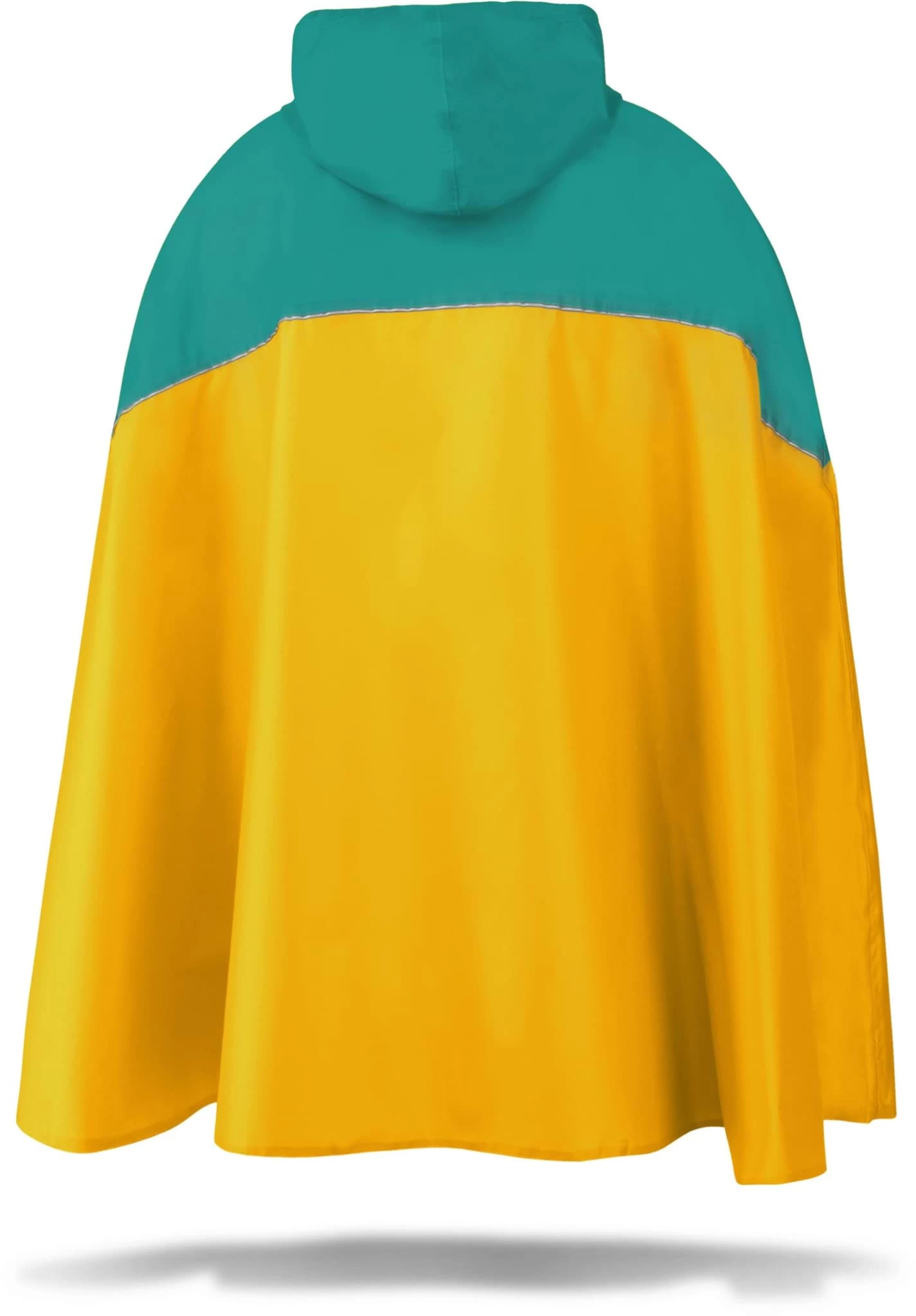 Für den täglichen Fahrradpendler wurden zwei weitere Features integriert. Der Regenponcho ist beidseitig einem 3M™ Scotchlite™ Reflective Reflekorstreifen ausgestattet, der die Sicherheit im Straßenverkehr erhört und das frühzeitige Erkennen bei Dämmerung ermöglicht. Des Weiteren, wurden auf der Unterseite praktische Handschlaufen und ein Bauchgurt angebracht, die beim Fahrtwind ein störendes Flattern verhindern. Sogar ein kleiner Daypack lässt sich unter dem Poncho tragen. Zwei seitliche Patten, die mit Drückknöfen versehen sind, ermöglichen es bei Bedarf die Hände und Arme durch den Poncho nach außen zu führen.