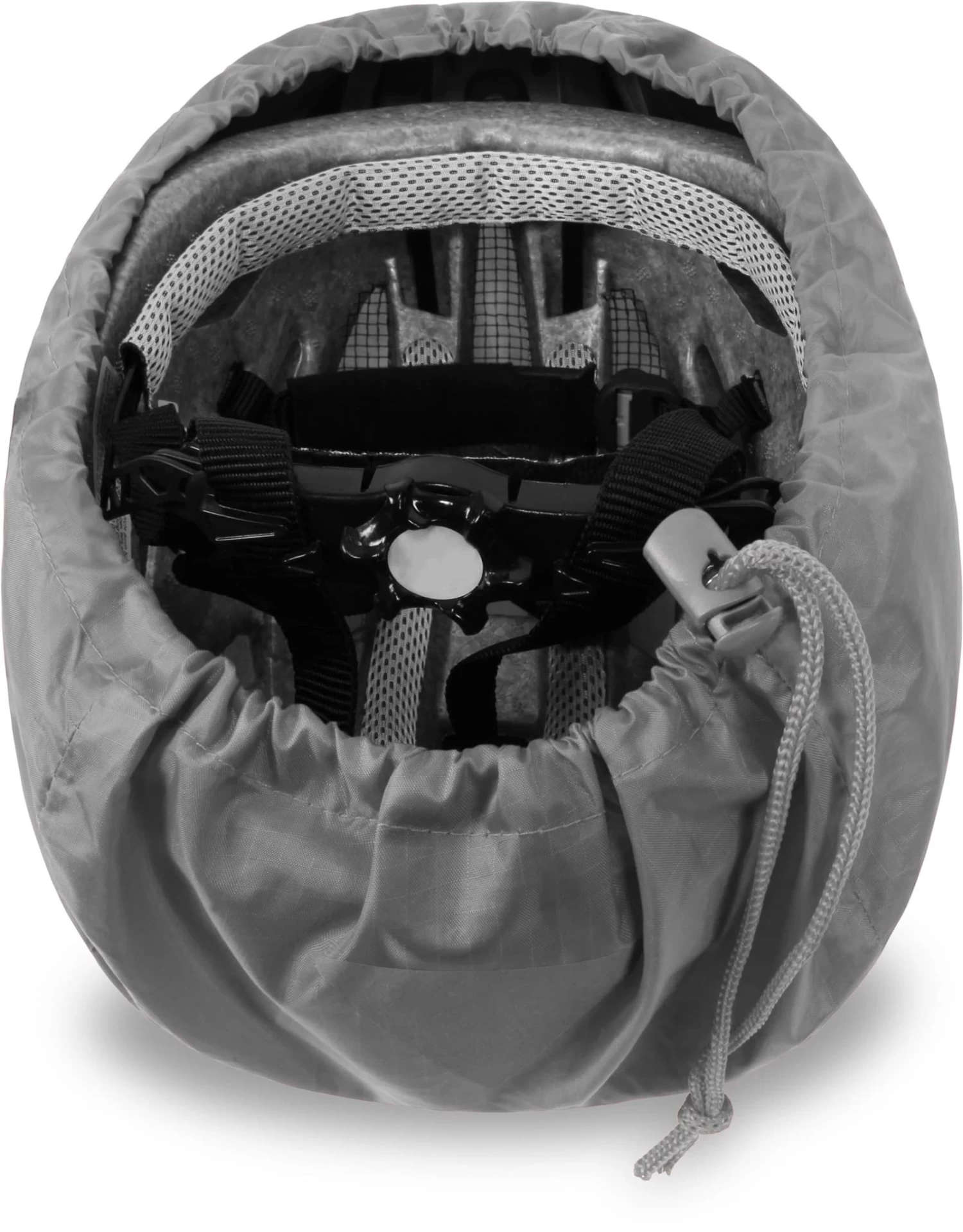 Der wasserdichte Helmbezug „BiHead“ besteht aus robustem Polyamid und ist dank seiner speziellen Ripstop-Webtechnik, bei der dickere Fäden in das Material integriert werden, enorm reißfest und strapazierfähig. Das Regencover wird einfach über den Fahrradhelm gezogen und mittels im Saum befindlichem Gummizug an die jeweilige Helmform angepasst. Es ist somit für alle gängigen Helme geeignet und schützt diese vor Regen, Schnee, Staub oder Verschmutzung. Mit einer Wassersäule von 3.000 mm bleibt Ihr Helm auch im Dauerregen trocken. Der Bezug wird in einem Packsack geliefert, der am Rucksack befestigt oder dank des geringes Packmaßes sogar in einer Jackentasche transportiert werden kann.