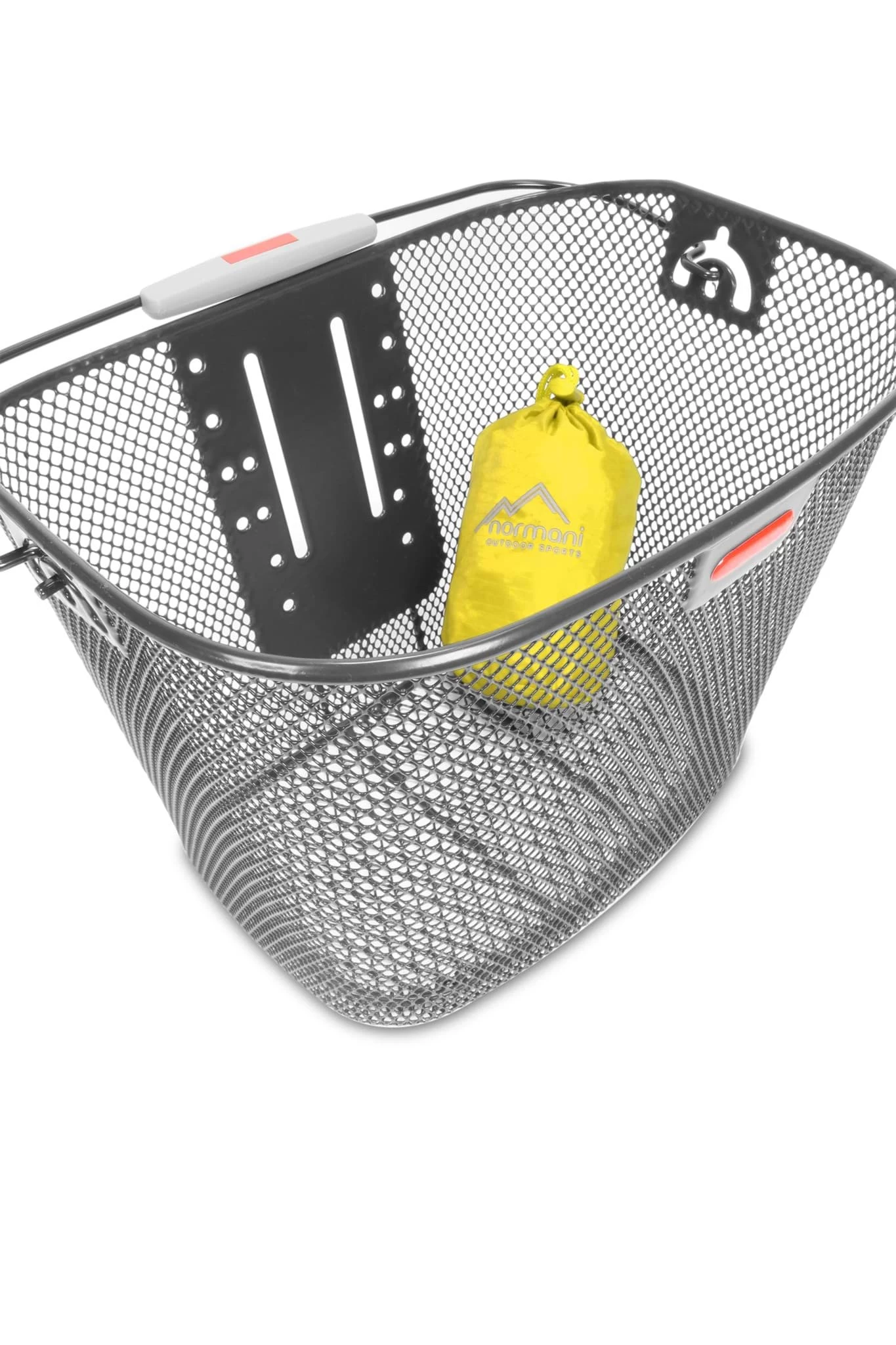 Der wasserdichte Fahrradkorbüberzug „BiCage“ überzeugt durch sein kleines Packmaß und einfache Handhabung. Der Korbinhalt wird samt Inhalt zuverlässig vor Schmutz, Regen oder Schnee geschützt. Dank des im Saum verlaufenden Gummizugs, durch den der Bezug der jeweiligen Korbform angepasst werden kann, ist stets der komplette Korb umhüllt. Dieser Regenüberzug ist auch für übergroße Fahrradkörbe geeignet.