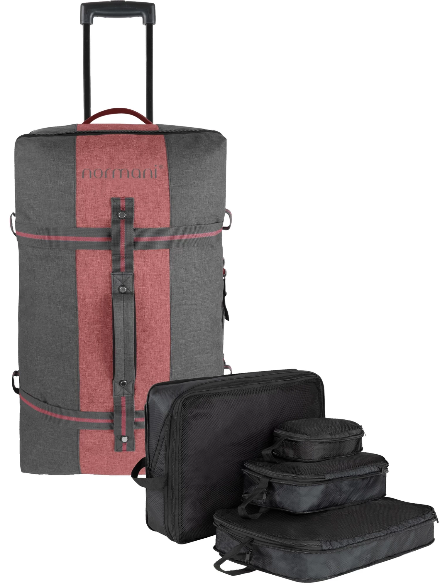 • Inklusivee 4 Kleidertaschem mit Kompressionsreißverschluss, welche perfekt in die Reisetasche passen