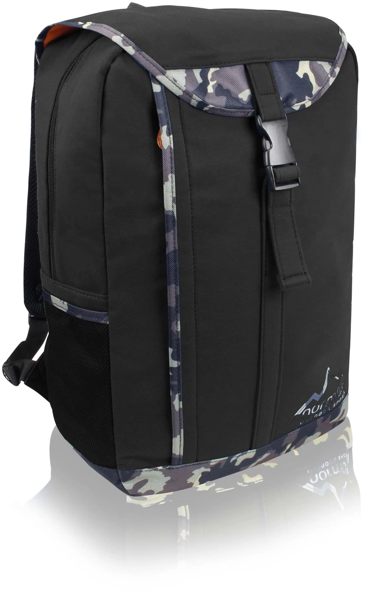 Der Daypack “Freshman“ kombiniert Design und Funktion. Dabei bestimmt die farbliche Absetzung im Camouflage-Muster die Optik – zusammen mit der Deckellasche samt Clickverschluss. Leicht und kompakt ist dieser normani OUTDOOR SPORTS® Rucksack zudem. Vielzählige Reißverschlüsse und Innentaschen gestalten diesen Backpack zum gut organisierten Begleiter für City, Kurzreise oder Schule.