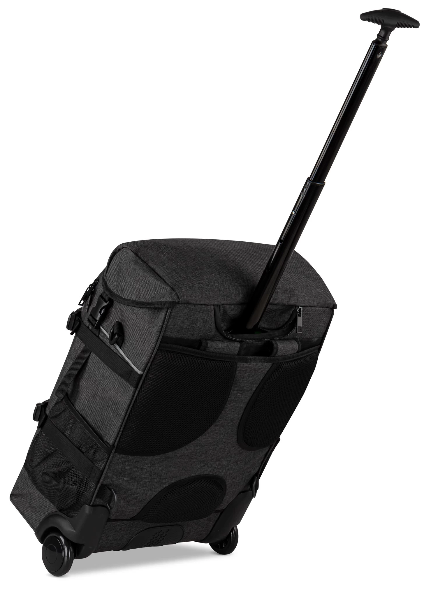 Wer den Rucksack als Trolley verwendet, wird die Vorteile der leichtläufigen Rollen und des stabilen und ergonomichen Griffs genießen. Auf dem Rücken als Trolley überzeugt die atmungsaktive und weiche Rückenpartie sowie die größenverstellbaren Trageriemen.