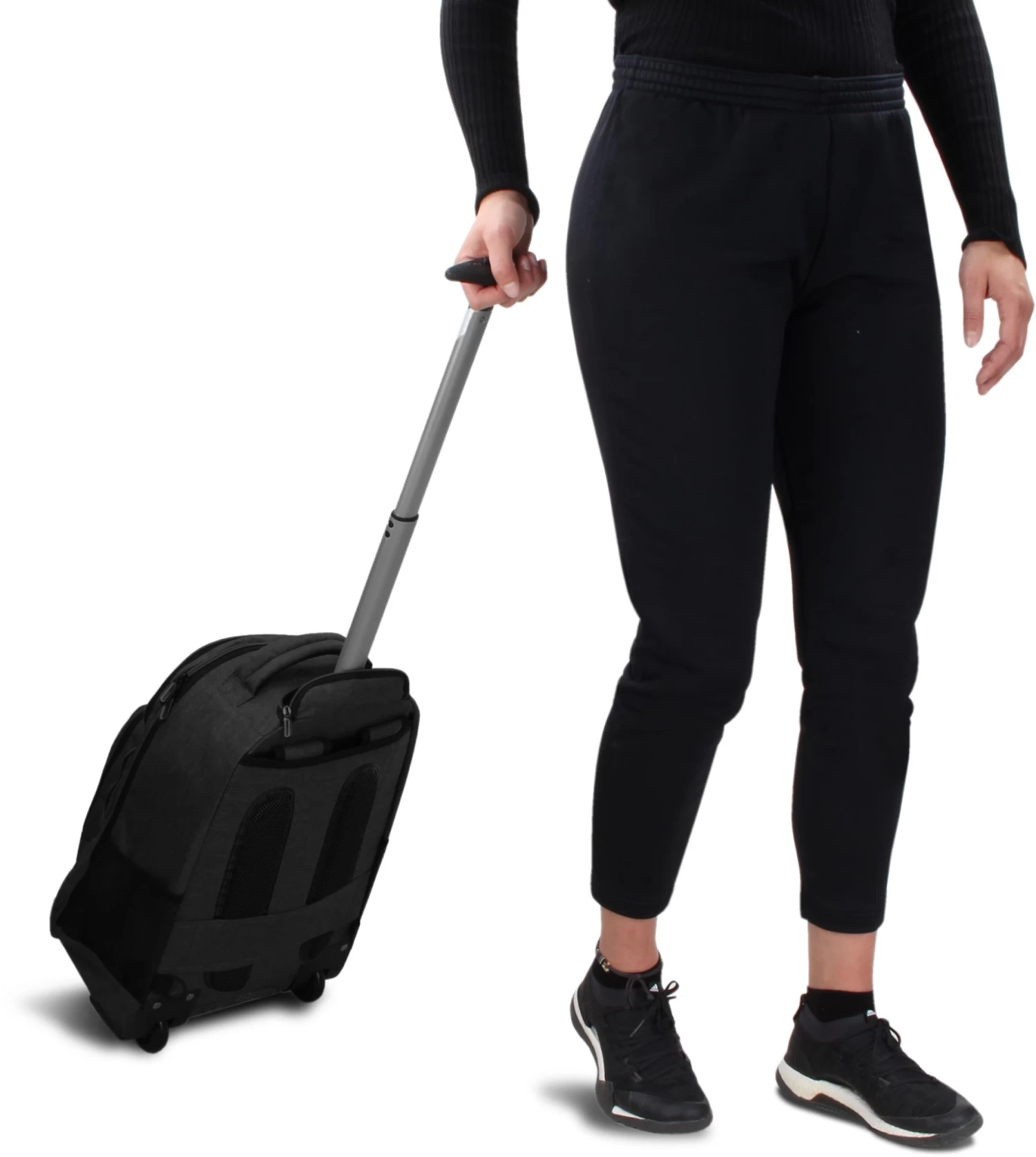 Wer den Rucksack als Trolley verwendet, wird die Vorteile der leichtläufigen Rollen und des stabilen und ergonomichen Griffs genießen.