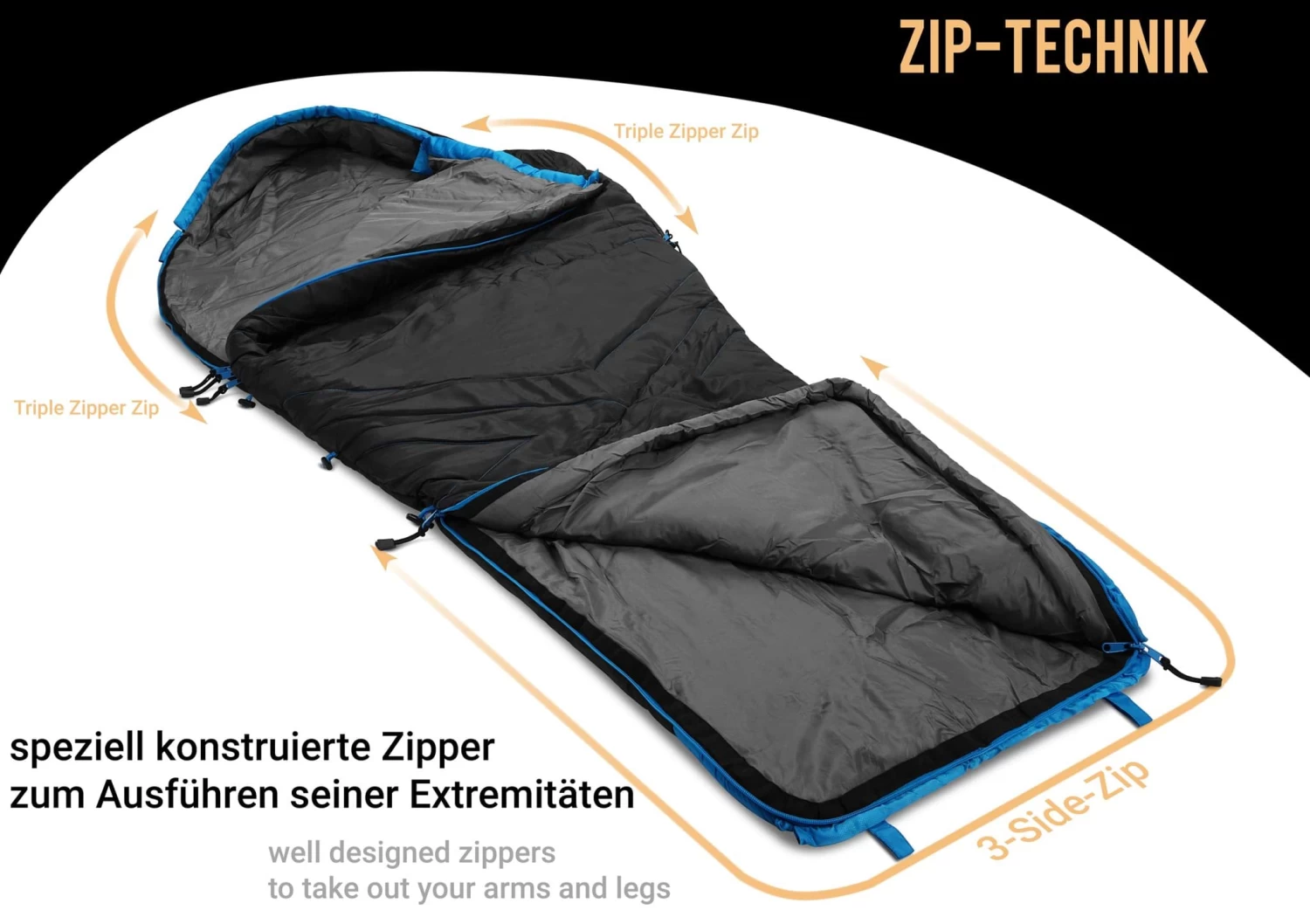 • Mumienschlafsack mit erweitertem Funktionsumfang